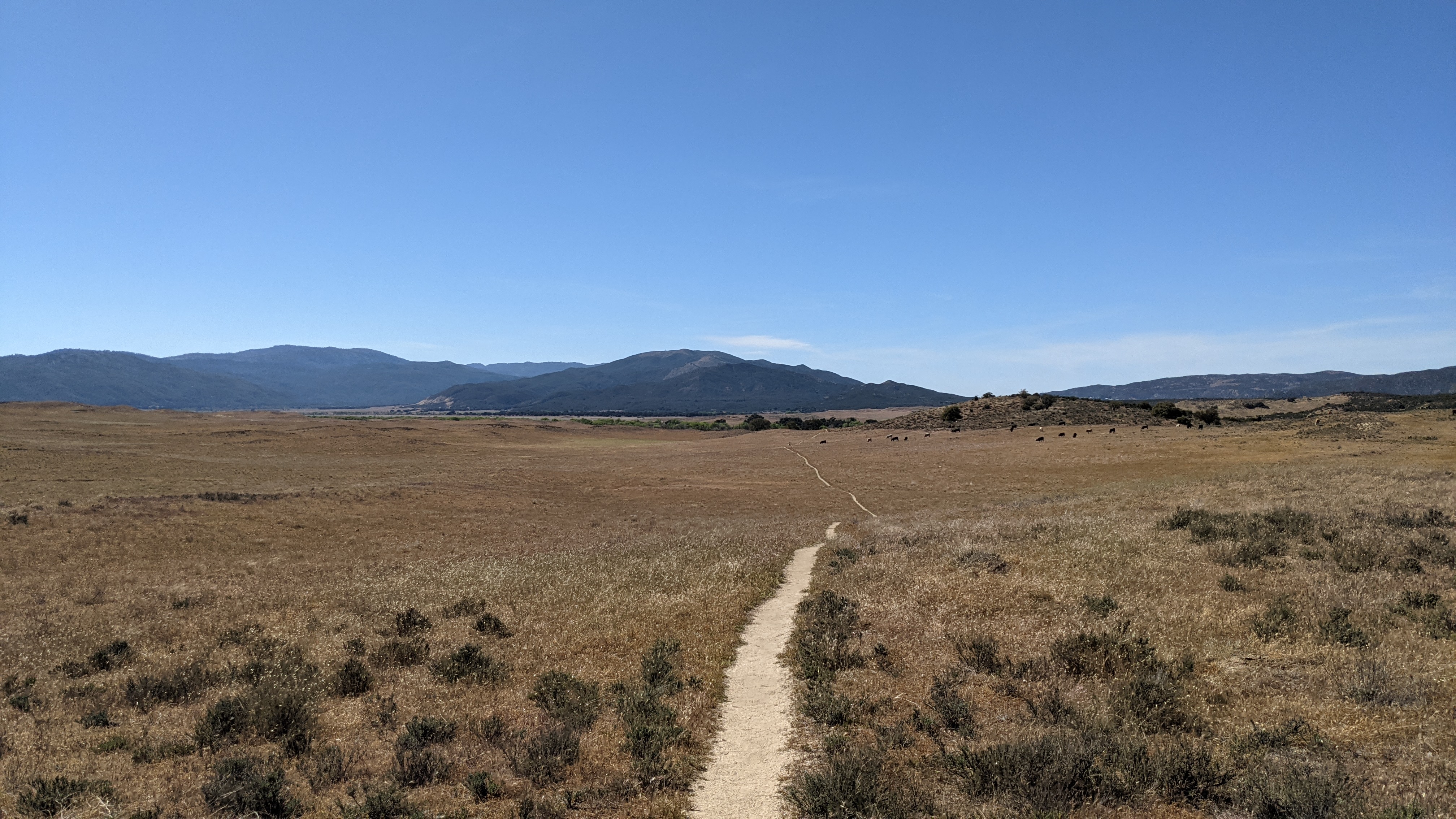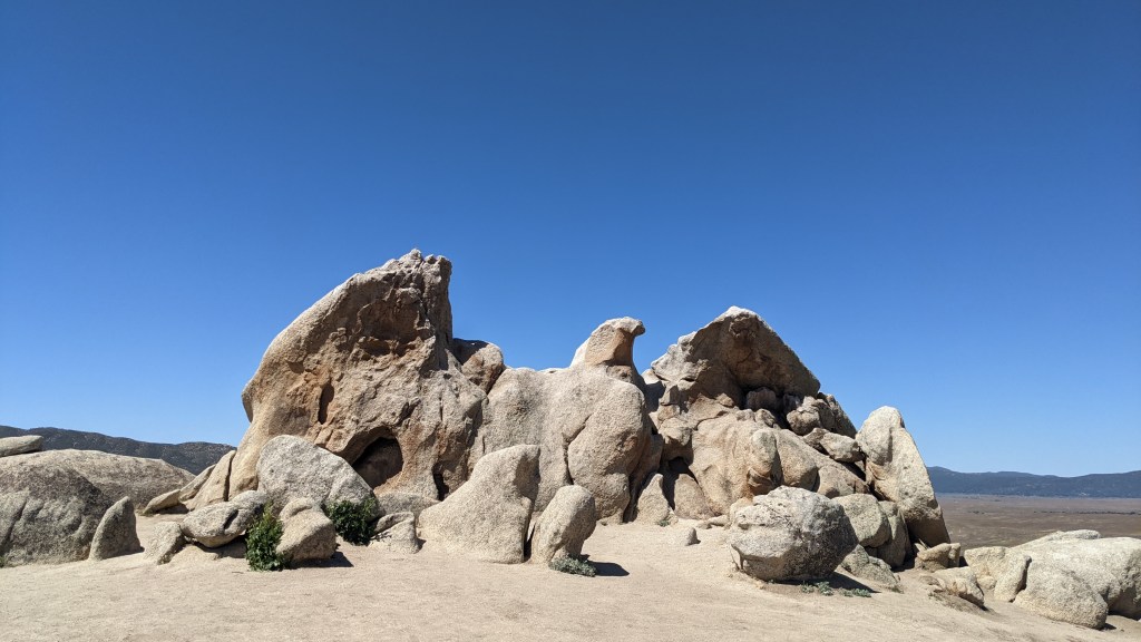 Warm again starting at 8:30, last campers to leave the site. Walked through Warner Springs Meadows which are rolling hills with cattle. Had a snack in the shade of a tree beside a creek before heading up to Eagle Rock. Along the way, some cowboy asked if we knew where Eagle Rock was located when we were only about a quarter mile away from it and had been seeing it come closer and closer for the past half mile at least. I pointed at it with my trekking pole and kept walking, but Marie responded, “I think we can figure it out.” Cowboy takes a step back with, “Well, some people don’t.” I guess some hikers are missing some cool sites along the way. Lunch was across the road from the Warner Springs Fire Dept. in the shade of a tree. We ran into Lightfoot when filling our water bottles at the fire dept. She has quite the résumé of athletic achievements not to mention she was hiking the PCT as part of her training for the Bad Water ultramarathon. Before we got back to walking I ran into Forest, who we haven’t seen since we all got off the bus in Campo. Further up the trail we ran into him again right before we made it to our camp site. He seems to be doing fine, which is nice to see. Filtered water for tomorrow, rinsed some clothes, made dinner, and in bed at 9.