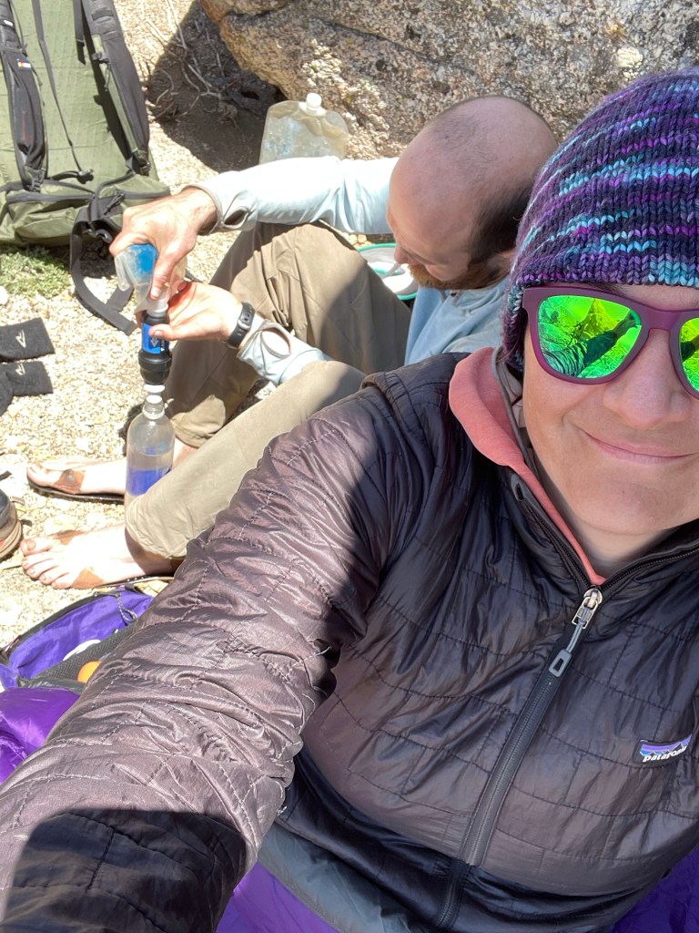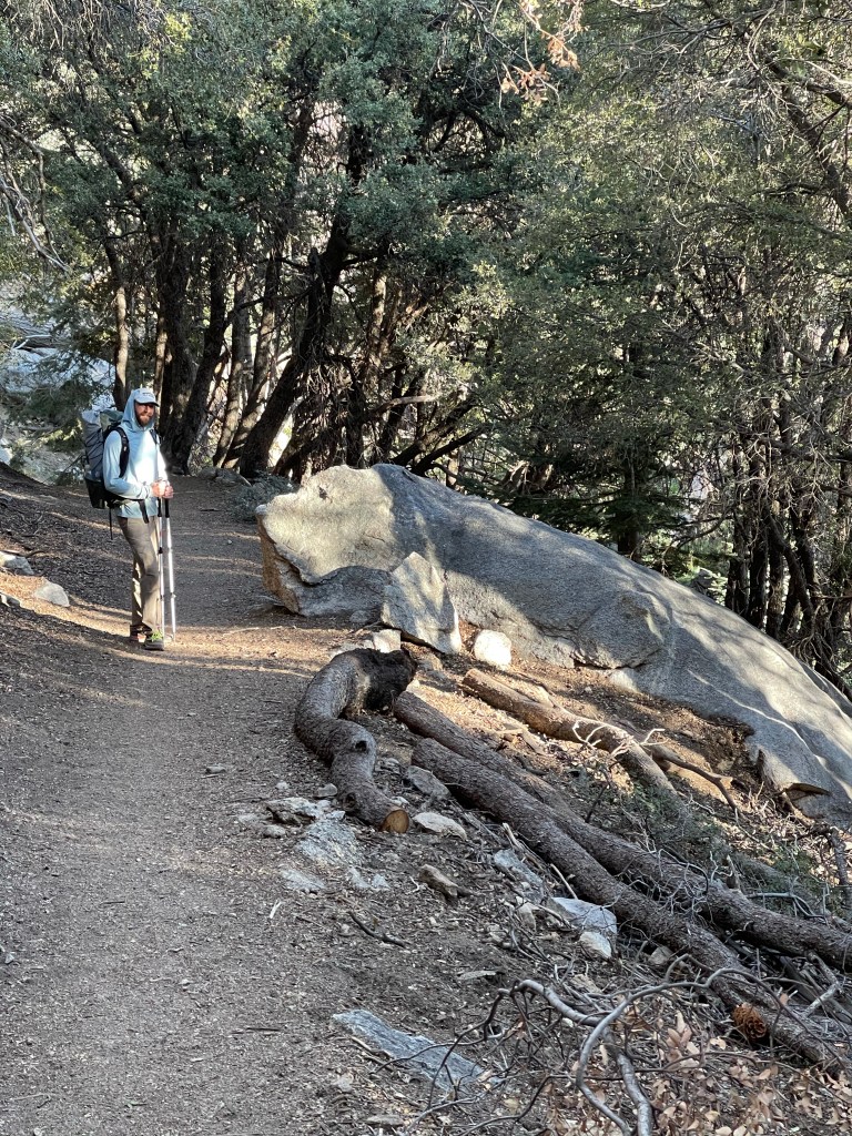 We took one 30 minute break in a nice, large camp area right after I bashed my head really good into a down tree. I never wear ball caps and I think now that I’ve been wearing one I have no sense of where my head is. It hurt bad enough that I had to stop hiking and do some deep breathing. I was fine not too long after to start doing some more climbing, yay.