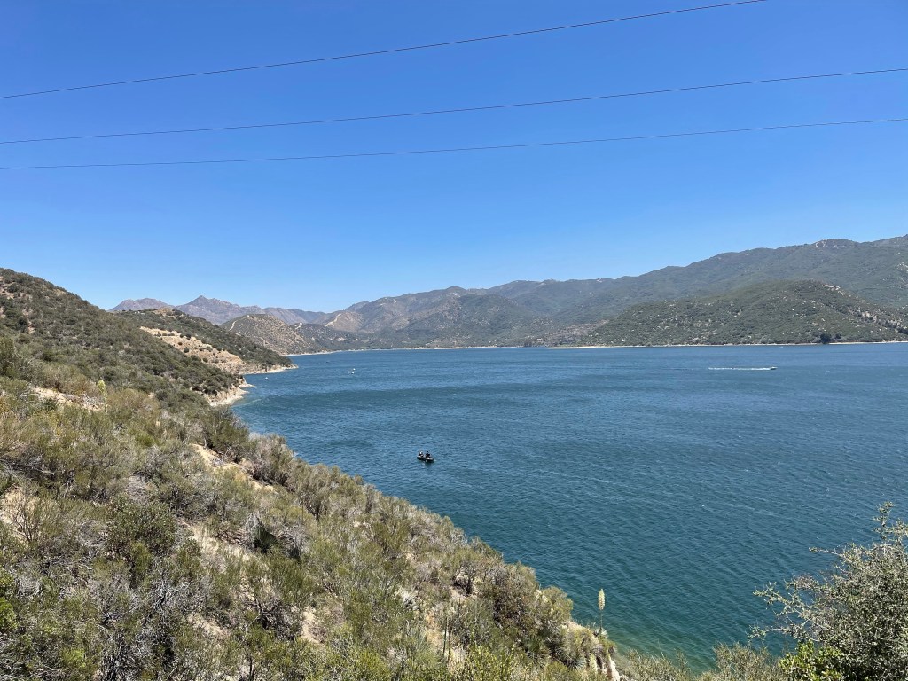 At the bridge we decided it looked a little weird and pushed on to a nice shaded spot near the road to watch traffic. We decided to just eat lunch because we were hungry and it was a short day. There were rumors that the place we were ultimately aiming for was able to get pizza delivered and we decided that was likely in our future. We’ve been kind of between hiker bubbles so it was nice when we heard a voice behind us. He looked lost because the trail kind of disappeared behind a tree and it’s a huge lot for some industrial stuff so we waved him over. We met Hoops and chatted about getting pizza later and how we didn’t have trail names yet. He pointed out that the two of us know each other the best so it would make the most sense that we would bestow them on each other. Soon after he parted Forest showed up to hang in the shade and we were on our way to the lake.