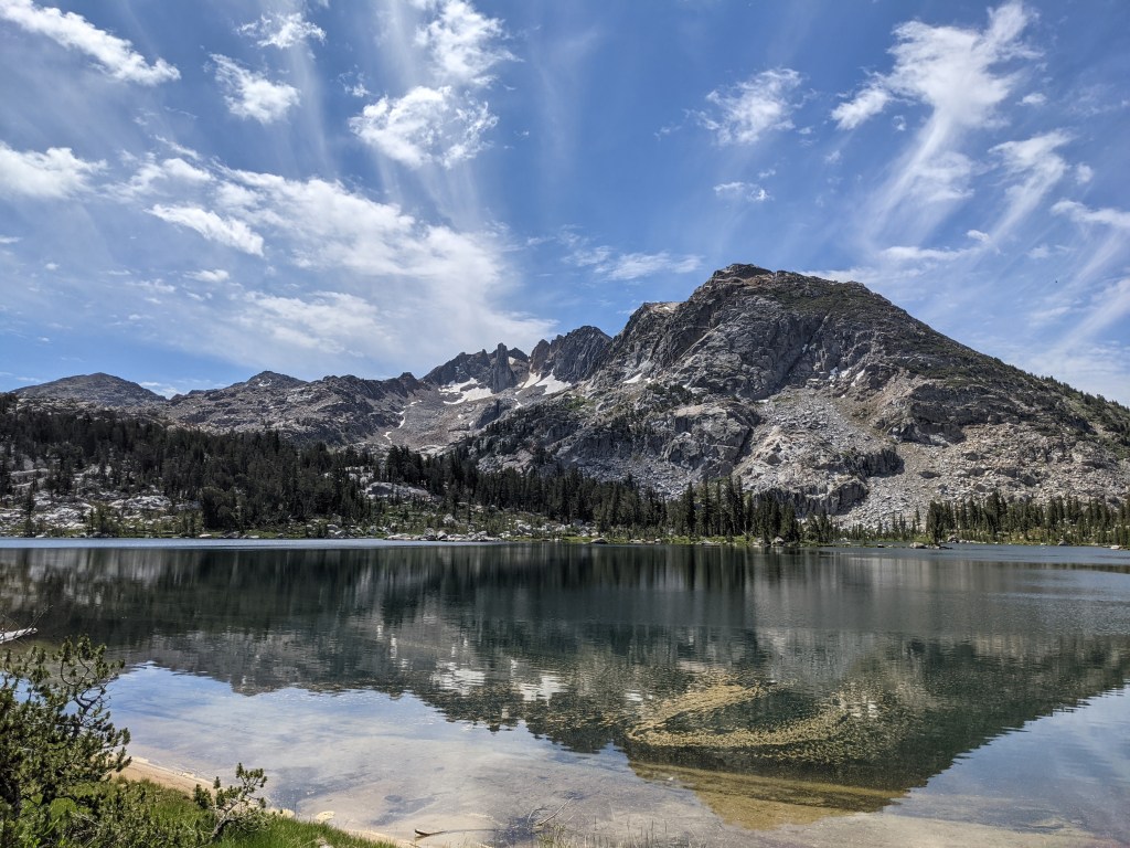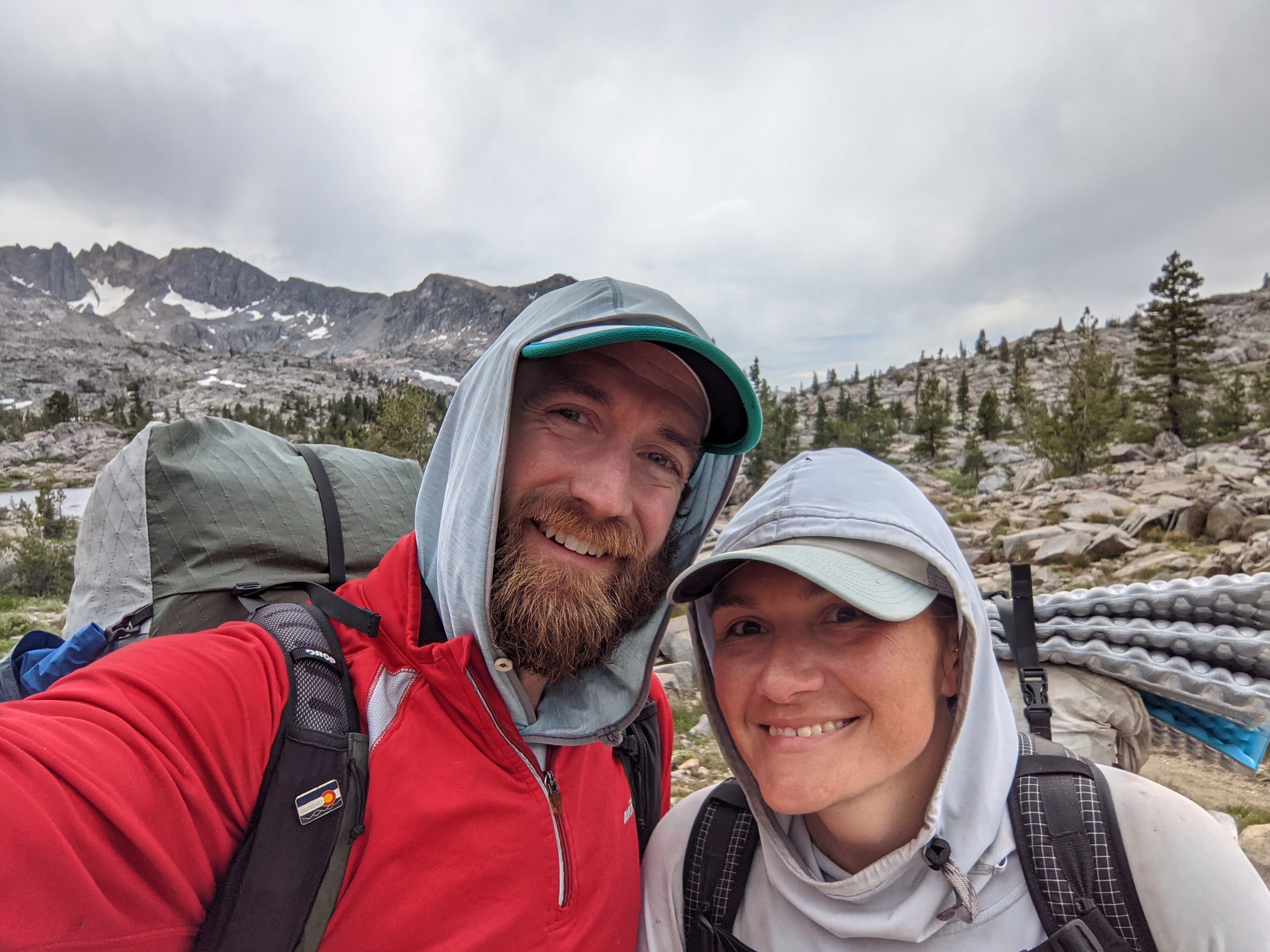 Knowing we had to ford the shallow river near us, we skipped putting socks on so it was one less thing to mess with while getting ready to get in the water. It worked out well. We crossed barefoot, and then put dry socks on wet feet in dry shoes. They dried off soon enough, but the main focus of the morning was dealing with mosquitoes. Almost the entire 9 miles to Dorothy Lake we dealt with swarms of them. Our lunch plan was to pitch the tent near the lake so we had somewhere to hang out while we took our break. There was a nice spot near the water that worked perfectly. We both rinsed out some clothes before getting in for a refreshing dip. As our clothes were drying, we hung out in the tent and ate lunch. The afternoon miles had us moving pretty quick. It looked like a storm was coming and we still had to get over the pass (and exit Yosemite). We made it over and started down. 8 miles to a little open area near a bend in the trail. We had a great view of the distant valleys and could watch the storm move through. Now, we sit here and listen to rain hit the tent and thunder claps echoing all around.