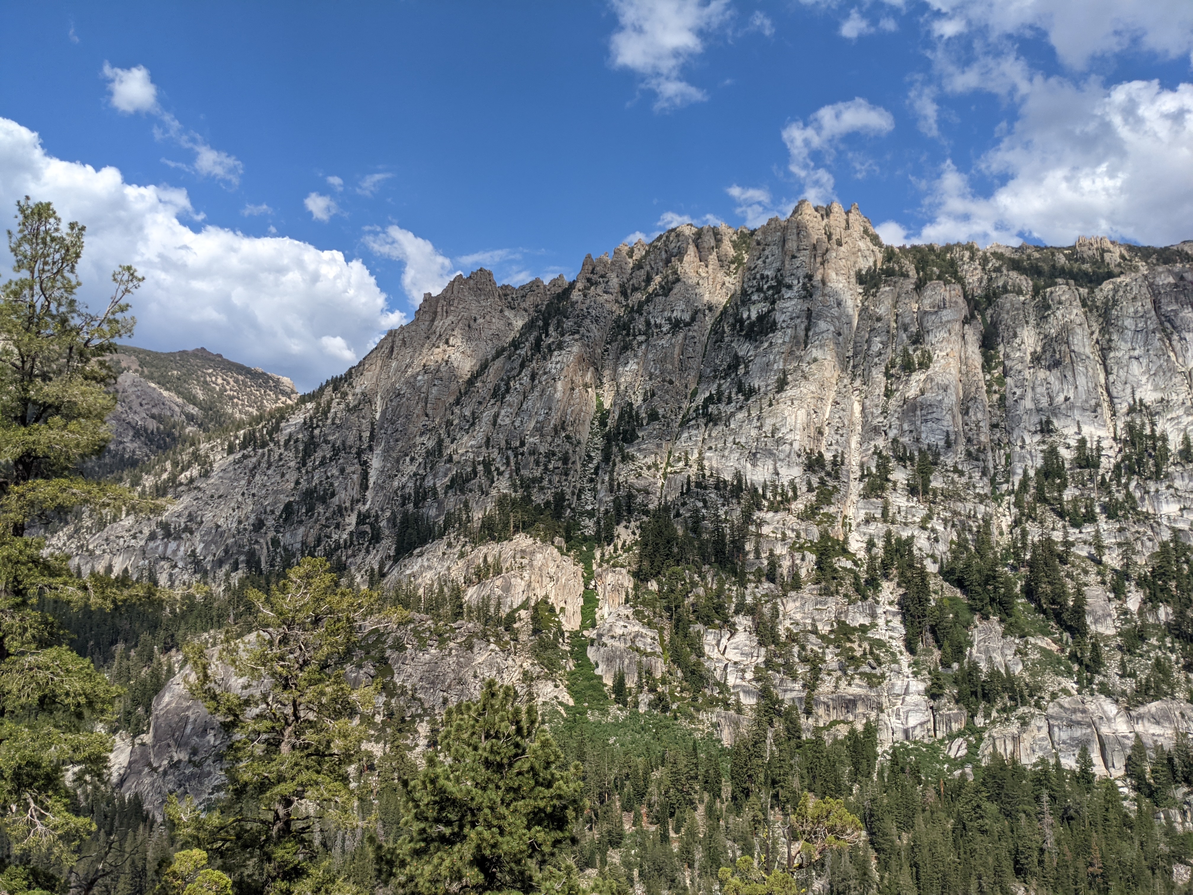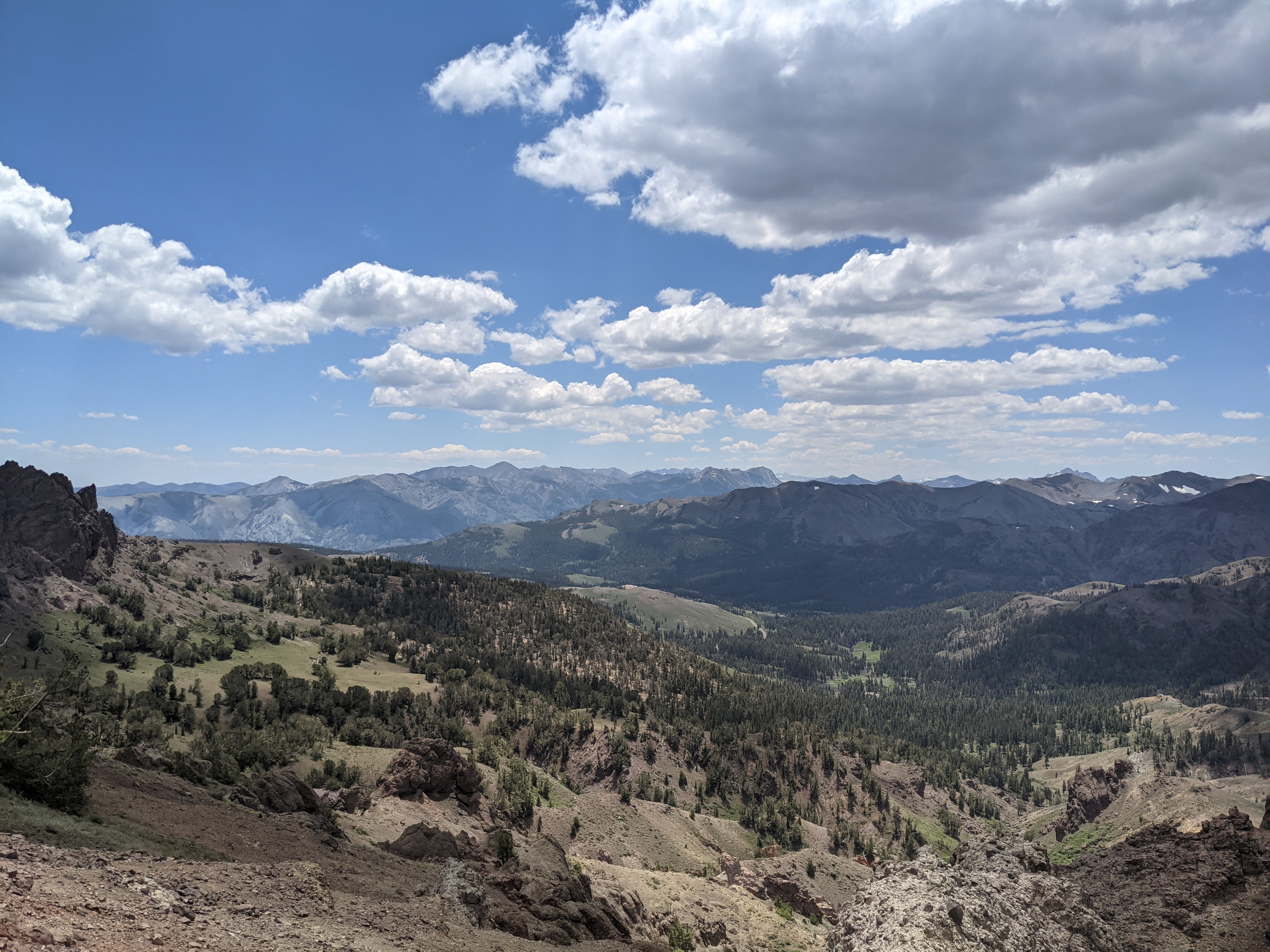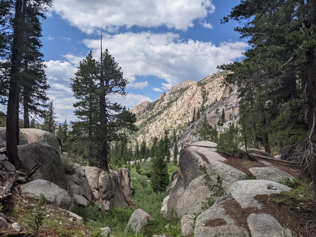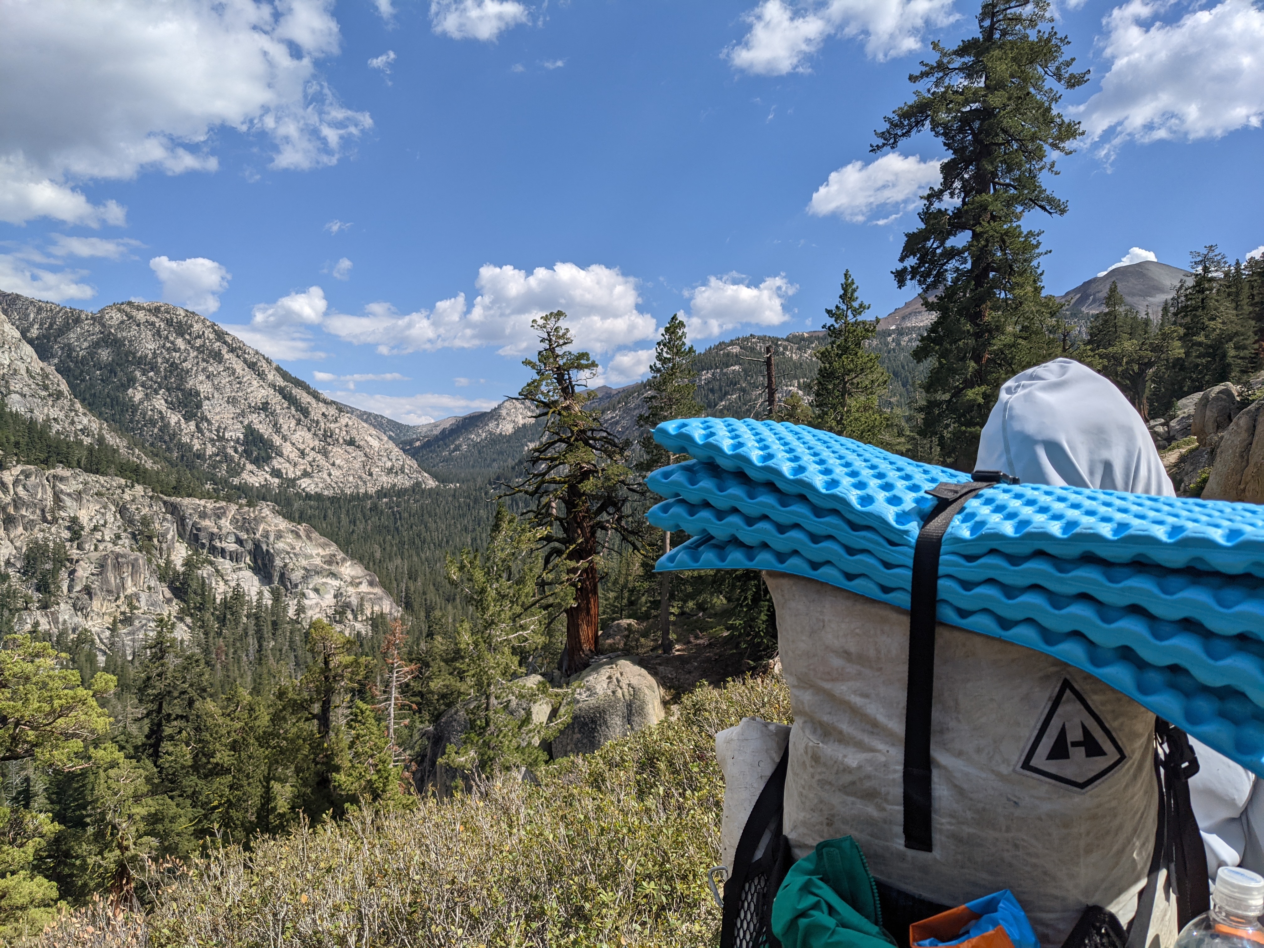 Up around 6, we headed to the shaded area where there were electric outlets for us to charge things. We plugged in our phones and then went to the restaurant again to eat breakfast. Coach, Juevos, and Gamechanger were already there. We sat and ordered. Mr. Brightside showed up a couple minutes later and sat with us. The service was much better this time and the food was filling. After eating, we bought our resupply, which was surprisingly good. Their selection was definitely influenced by hikers. Took our resupply over to the picnic tables near our tent to repackage and pack into our food bags. The alleged car-dwelling man sat at another table and tried to talk to us, but was speaking gibberish. We took more showers, mailed back our bear canisters, and tore down the tent. The shuttle was due soon, but we needed to individually request tickets in order to ride it. The wifi password was manually added to my phone by the attandent. I assume to keep it secret from non-PCT hikers. Ron showed up with the shuttle van and 10 hikers piled in. He took us back up to Sonora Pass where we then got back on trail. It was still only 10:30 so we had almost a whole day of hiking available. We rolled through the miles. Chatted with Tortoise a bit on the descent and then passed him later on. Our campsite had a good hangout spot with no mosquitos and a boulder to use as a backrest, so we made dinner and enjoyed being outside the tent. As the sun set it got colder and we had to get into our quilts for the night.