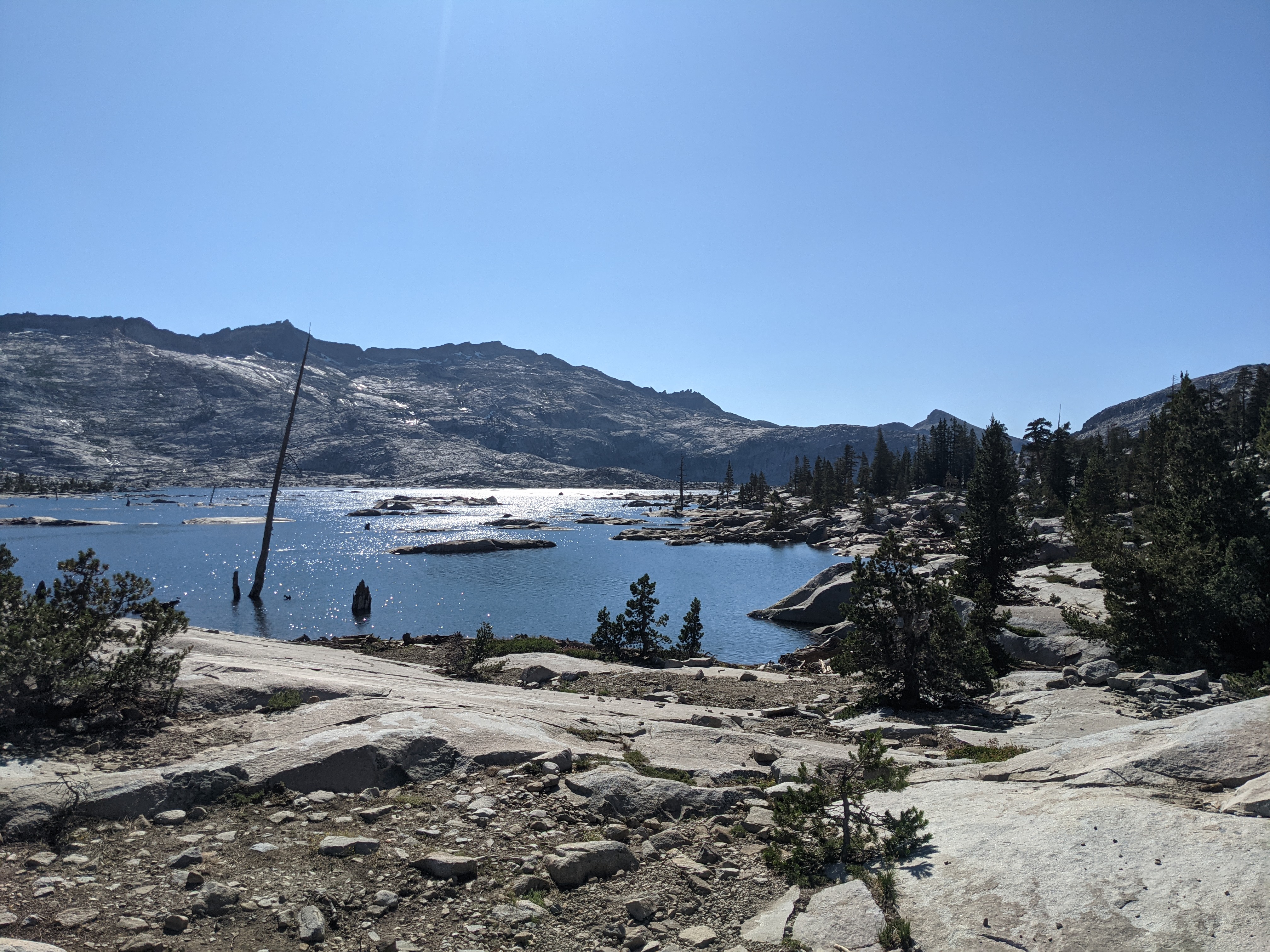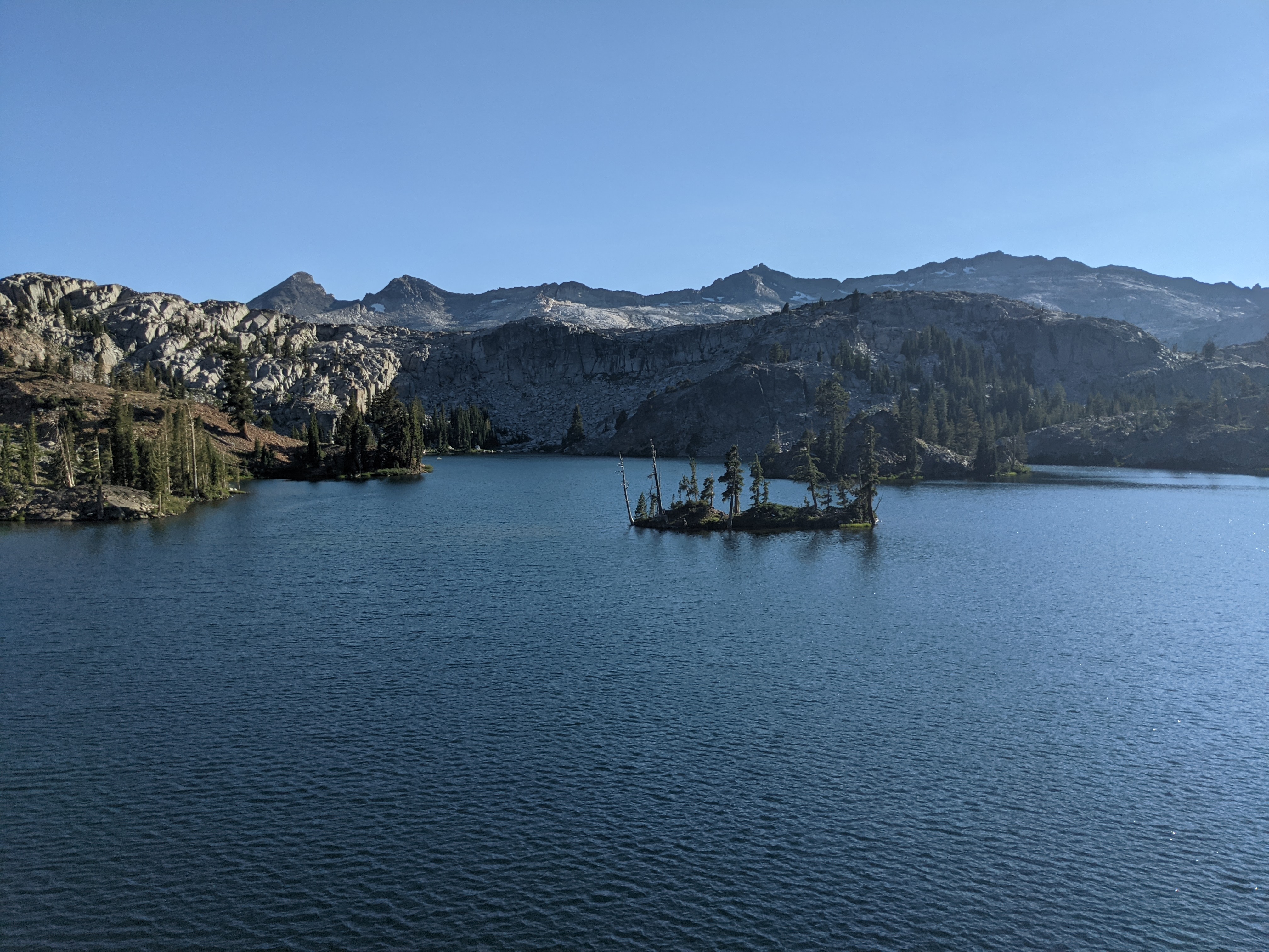 Our hostel roommates brought friends to our room last night to simply show them what a hostel room looks like inside. At about midnight they showed up for this tour when we had already been in bed with lights out. Then, they can back again at 4am to gather some things and leave. I think we’re done with hostels. We got up around 7 and went to breakfast again at Driftwood Cafe. We showered one last time and then packed up and headed to Flatstick Pub to meet Marie’s friend, Ashley, from Seattle who was now working there. She had offered to take us back to the trailhead and we just needed to wait for her to be done working. Ashley kindly dropped us off at Echo Lake where there is a general store and marina. We got snacks and then headed out. The sign at the trailhead said that Desolation Wilderness is the most used (per acre) wilderness area in the country. I believe it, because it took us about 45 minutes to walk a mile due to having to stop so many times to pass people. There are also lots of comments about bears in the area. Normally, I’d expect that near the lake-front campsites where weekenders like to setup. Bears learn that humans have food and return when they’re hungry, so they know where these campsites are located. Most of the sites are not “legal”, since they’re not 100 feet away from the water. We skipped those and tried to find better options, but ended up hiking an extra mile and a half before we found a site in the woods, well away from the lakes we had passed. We set up, started making dinner, and then I heard some noises from the rock pile behind us, just past the trail. I looked out the tent and sure enough, there was a bear about 20 yards away. I threw my shoes on and got out of the tent, Marie did the same. I grabbed some sticks and started shouting at the bear. He didn’t seem to care too much until I started moving toward it and throwing sticks. Marie joined me and we switched to throwing rocks. For about 10 minutes we kept yelling, throwing stuff, and slowly walking towards it before it finally left the area. I fully expected it to return, but he never did (as far as I know). I suspect he went down to the lake campsites for an easier meal option. We finished our dinners and then got ready for bed (with piles of rocks beside the tent, just in case).