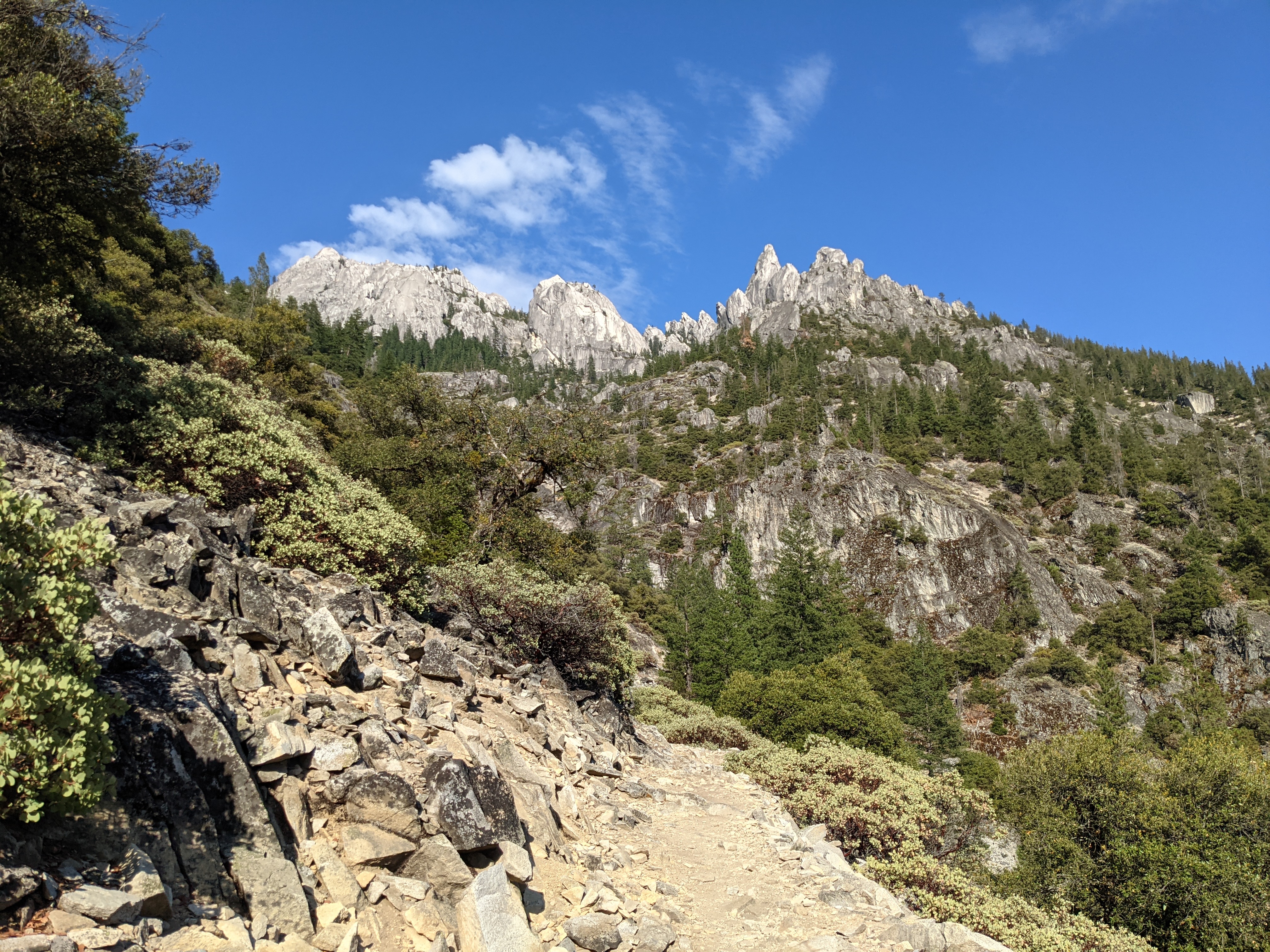 Packed up and checked out of the room before getting coffee, again, from All Aboard. With no other restaurant options, we waited for the brewery to open. While we were waiting, Good Nut walked by and we told him about the bus at 12:44. He was headed to get tacos when the Mexican place opened. We got beers and food at brewery, but we missed the bus at 12:44 that we wanted. I still blame the server for not running my credit card fast enough, but realistically we should have gone for tacos instead. The next bus wasn’t until 7, so we hitched a ride with a guy that appeared to be moving out of his car into a house. He said he’d give us a ride to the trail if we helped him move his mattress inside, so we walked to where his house was and I helped him get his car unloaded. He dropped us at the trailhead around 2 where we saw Stoked and Right On Time. With plenty of time left in the day, we hiked 10 miles to camp. Full Moon and some other dude were already there cowboy camping. Not two minutes into our conversation with them, the other dude farted unabashedly loud and said nothing. Marie and I were both surprised, but laughed about it later. They had gotten the good spots near the trail so we scouted out a place we could setup and found one just behind them. Later on we were joined by Snow On The Trail, Shorts, and Pepperjack.