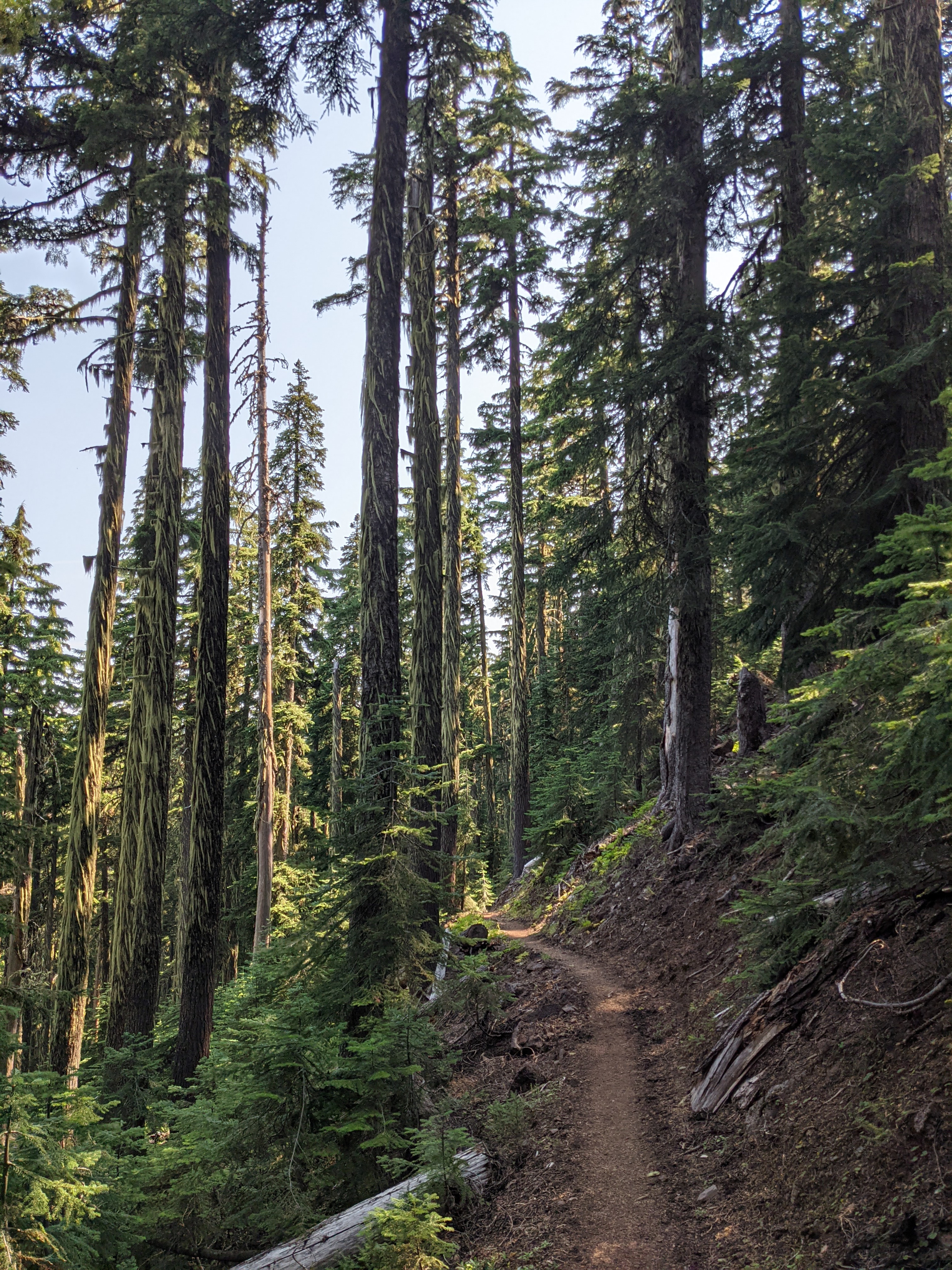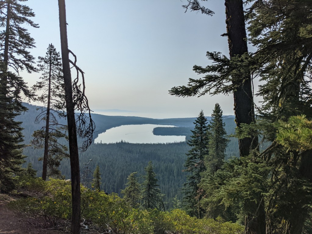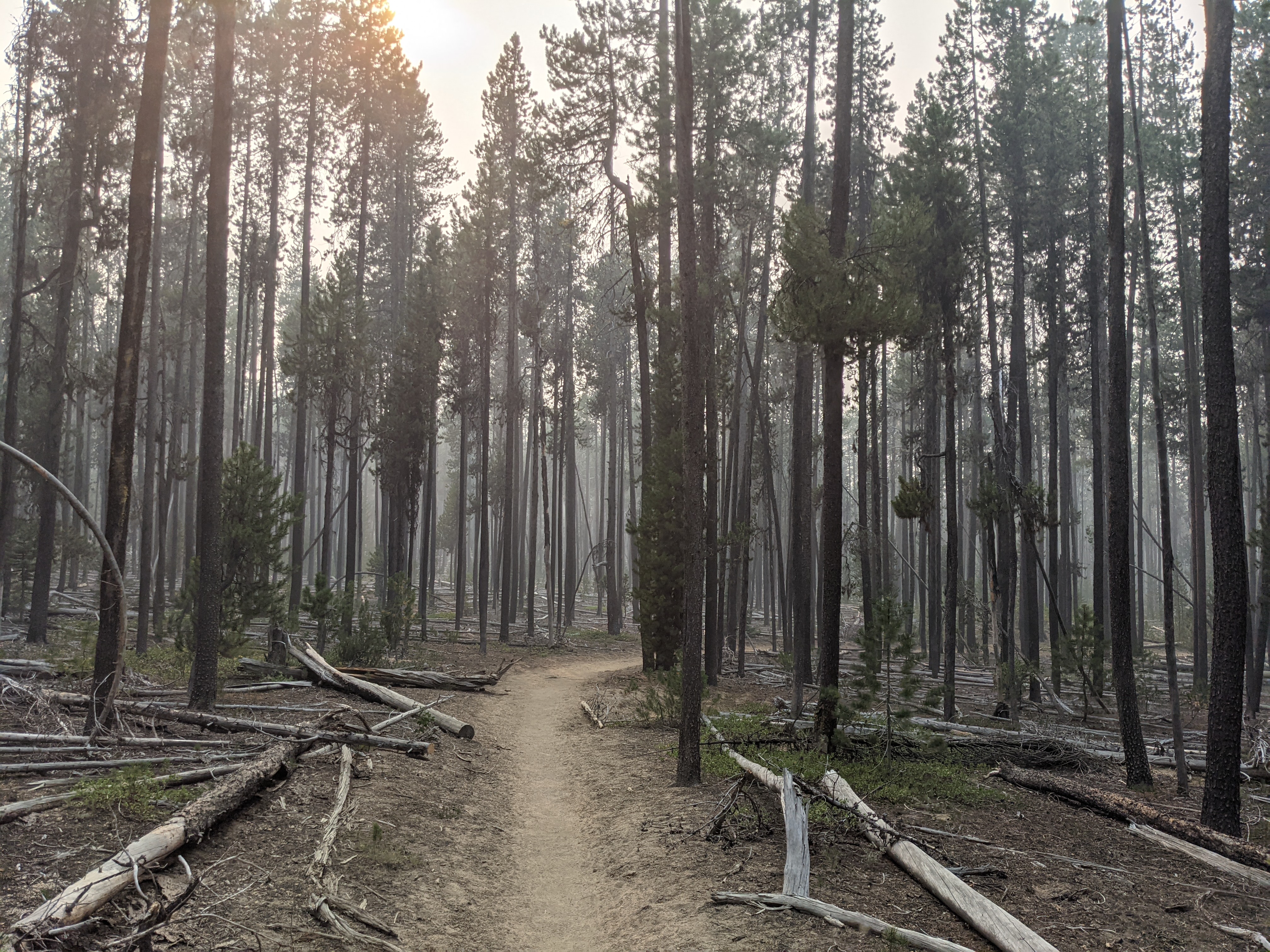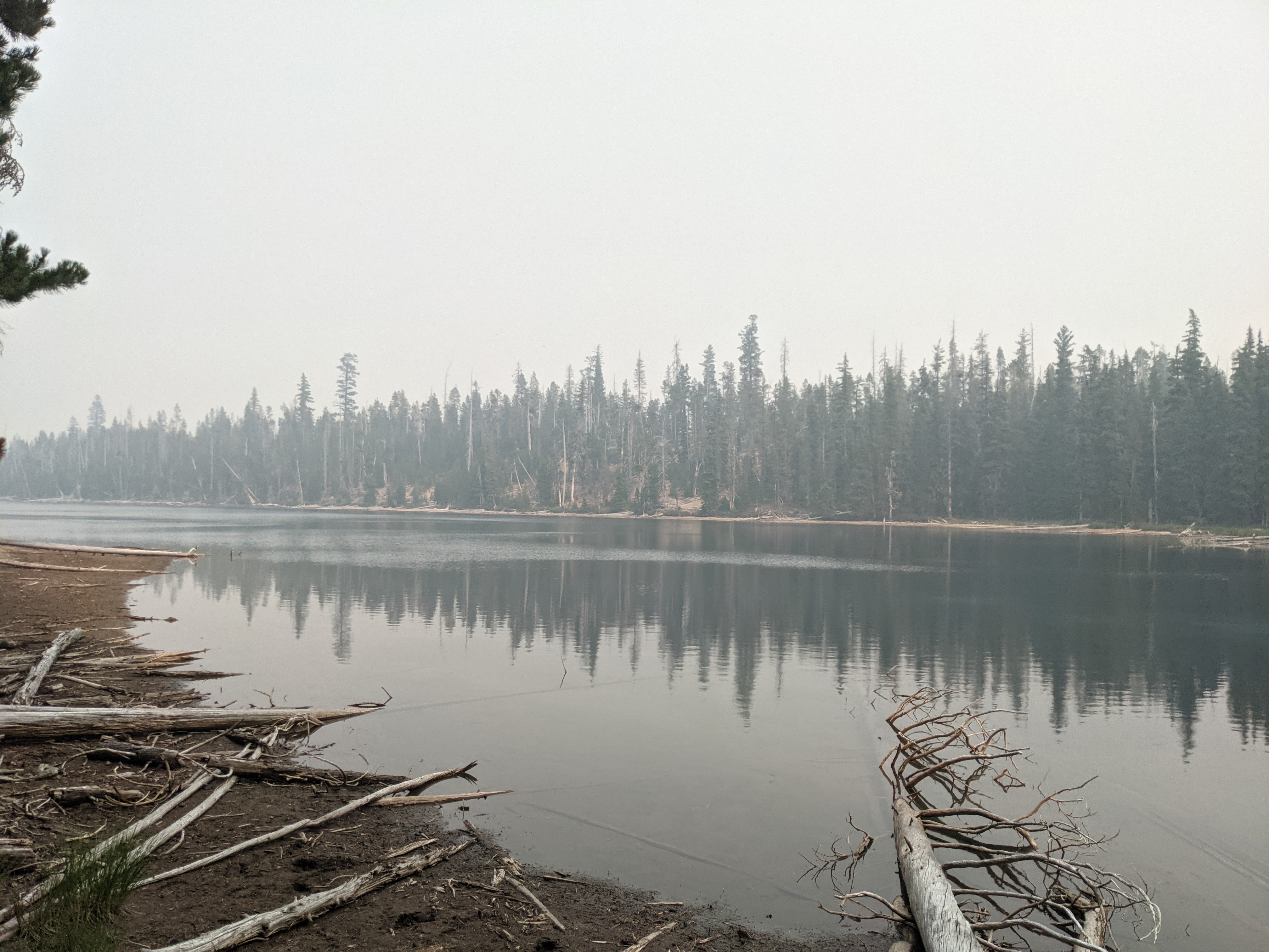 We were the last ones to leave camp, which meant we had the whole place to ourselves as we packed up in the morning. The side trail back up to the PCT was gradual, which was true of almost all the trail today. Also, dusty. It gets caked on your skin throughout the day and you can feel the grit on your teeth. Between the dust and smoke, I will need to apologize to my lungs after this. Water today came from the lake in the morning, and then from another Devilfish cache at lunch. We’ve been leapfrogging with a younger group since Crater Lake and they also took the alternate route to Whitefish Horse Camp. The camp hosts are Jim and Jerry (though Jerry wasn’t there while we were) and they love hikers. Today was Jim’s birthday and he felt bad that he wasn’t cooking us all dinner, there were 12 of us. He was a great guy and loved to talk with us all. He gave us an introduction to where to go around the campground, then passed out ice cream sandwiches to everyone. We sang him happy birthday and then we all gathered at the big picnic table to cook our dinners. Each hiker was boiling water, rehydrating their meal, then eating with unending hunger. Afterward, we all turned in. I’m excited for tomorrow because it’ll be a short, 10- mile day to Shelter Cove where showers, laundry, and resupply await.