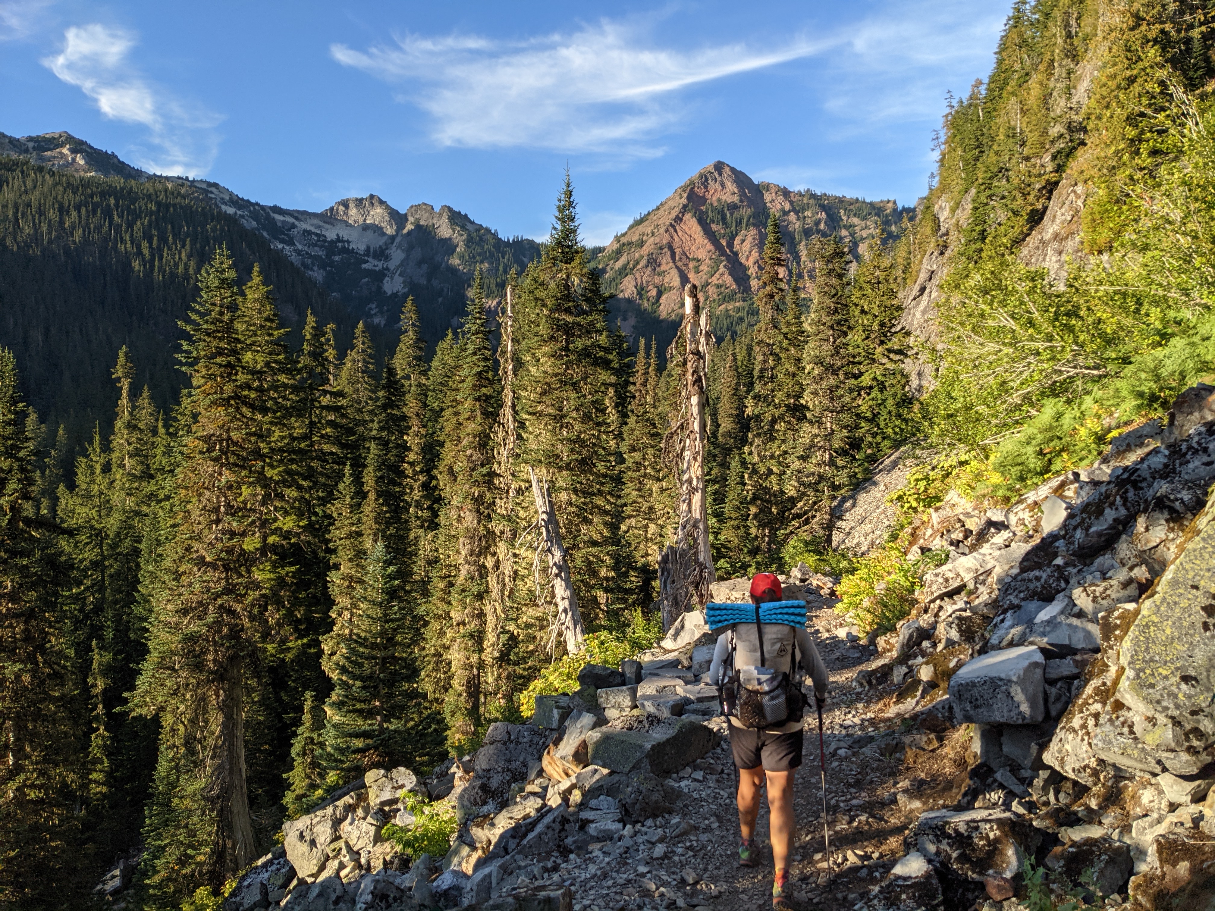 We are returning to trail today after a week-long break. We celebrated Carrie and Will getting married, met baby Albie at Tony and Gabrielle’s, ate some ‘murican food with Eric and Megan, meals with both of our families, and a fair amount of driving. A busy vacation. Glad to be back to the simplicity of trail life. However, I will say it was nice to be in civilization. We didn’t get back to Heidi’s apartment until about 1:30am, so it was a struggle to get up around 7:30 to start our day. We needed to buy our resupply yet. Took a quick trip to both Trader Joe’s and Safeway, which provided a great selection of food. We needed to buy food for this next stretch to Leavenworth as well as a mailed box to Stehekin that we’ll pick up for the finish. Very exciting! Brunch from Glo’s again, back to the post office, and then on the road to Snoqualmie Pass. Heidi dropped us off, we started up, and quickly had to relearn how this hiking thing worked. Like riding a bike, we cruised through 4 miles to camp.