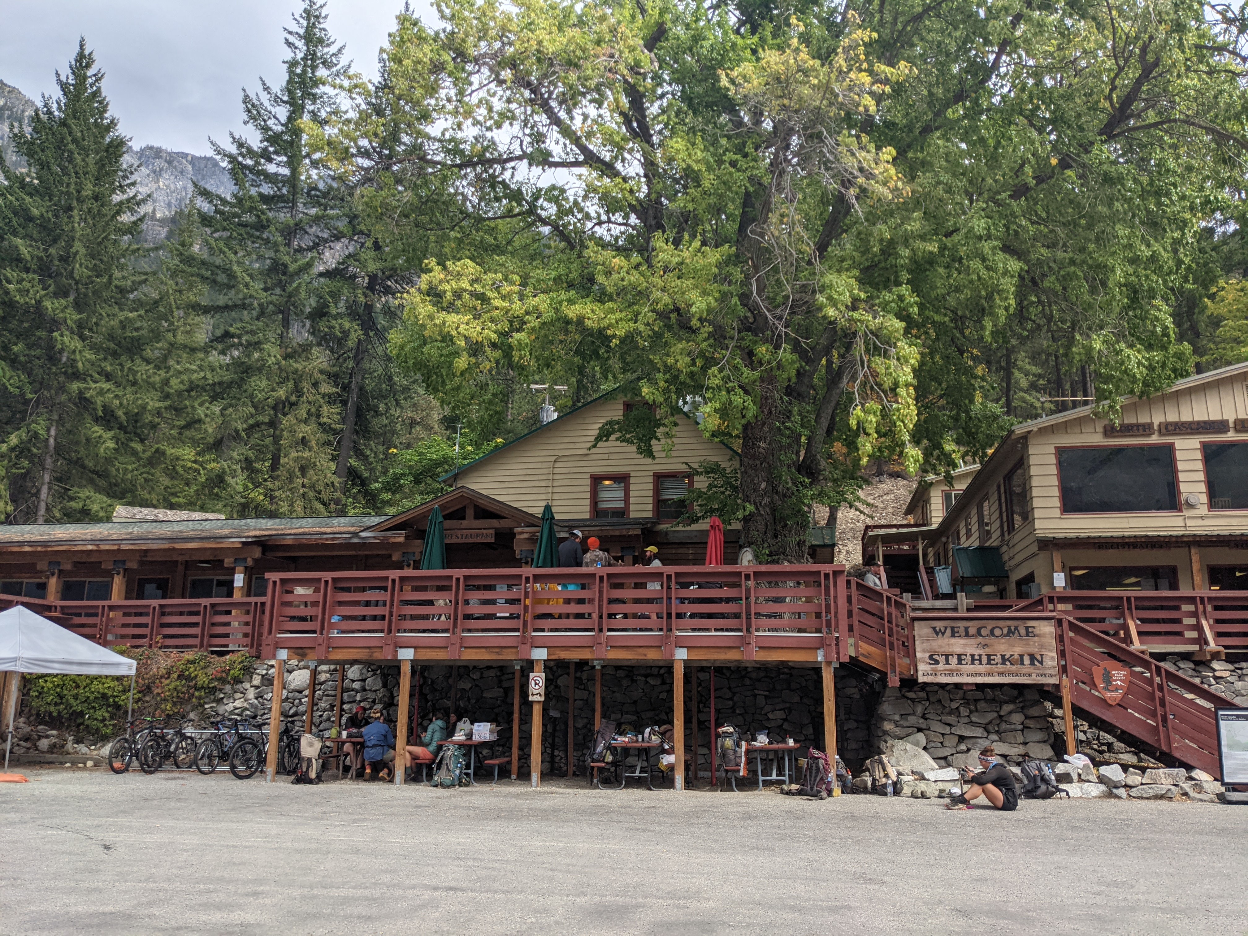 Today was a long one, but things went smoothly. Woke up at 5 to shower, pack up, and get to the bus stop across the parking lot by 6. First bus was right on time, we made our transfer to the second bus, and then got on the Lady of the Lake ferry at 8:30. The ride across Lake Chelan was calm; I even napped for a few minutes. We arrived in Stehekin around 11:15. There were a bunch of hikers we knew: Magnet, Narrator, Navigator, Clancy, Godfather, Sunshine, Flavortown, and others who I can’t remember their names. It was fun meeting up with Magnet again. Most hikers seemed to be shooting for 6 days to tag the border and get back to Harts Pass, so we might actually finish with a bubble of hikers we’re familiar with because we have the same plan. We picked up our resupply boxes that we had mailed from Seattle from the post office. After packing it all up and then mailing home some leftovers, we just hung out waiting for the 2pm bus to the trailhead. Stehekin is a beautiful little lakeshore town. Everything comes in by boat or floatplane (or on foot). The cars that are there were barged in. Knowing that, the bus shuttle to and from the trailhead is even more impressive. It stops at the town’s bakery along the way. Hikers rave about the food, and for good reason. A true gem in this remote spot. The bus was full of hikers and we all got dropped off around 2:30. By 3, everyone had eaten their baked goods and started up the trail. We were the last to head out, but not before being told by one of the park rangers that we couldn’t camp at the spot we had planned because it requires a separate permit. Our only options were campsites at 5 miles or 11 miles. Since it was already 3, we figured on the closer one. It started to lightly rain as soon as we began walking and didn’t stop until we reached camp. Figures. When we arrived at the Bridge Creek Camp we changed plans to push on to Six Mile Camp instead since it was only 5pm, we were already wet, and the forecast for the rest of the week calls for more rain and snow. So extra miles now may be easier than later. And right now we just want to finish as soon as we can. It was a quick extra 6 miles. We got to camp and snagged the first spot that our tent could fit. There’s at least a dozen other tents here, but since it was nearly dark and most hikers were in their tents already due to rain, I’m not sure who all is here aside from Clancy and Godfather.