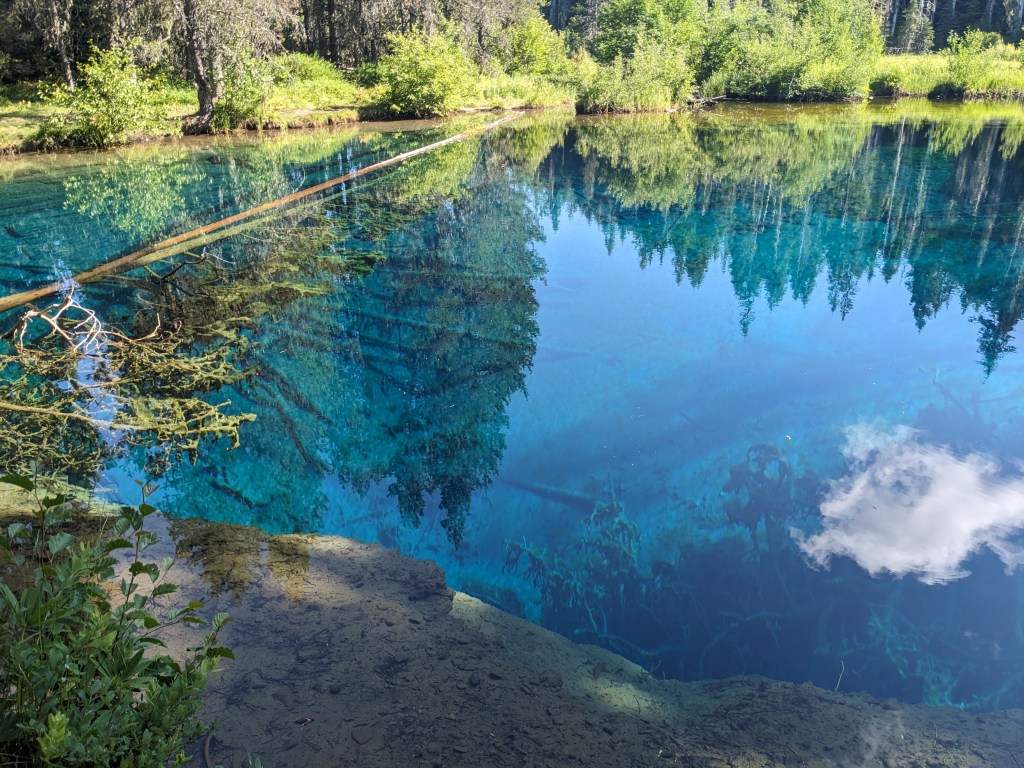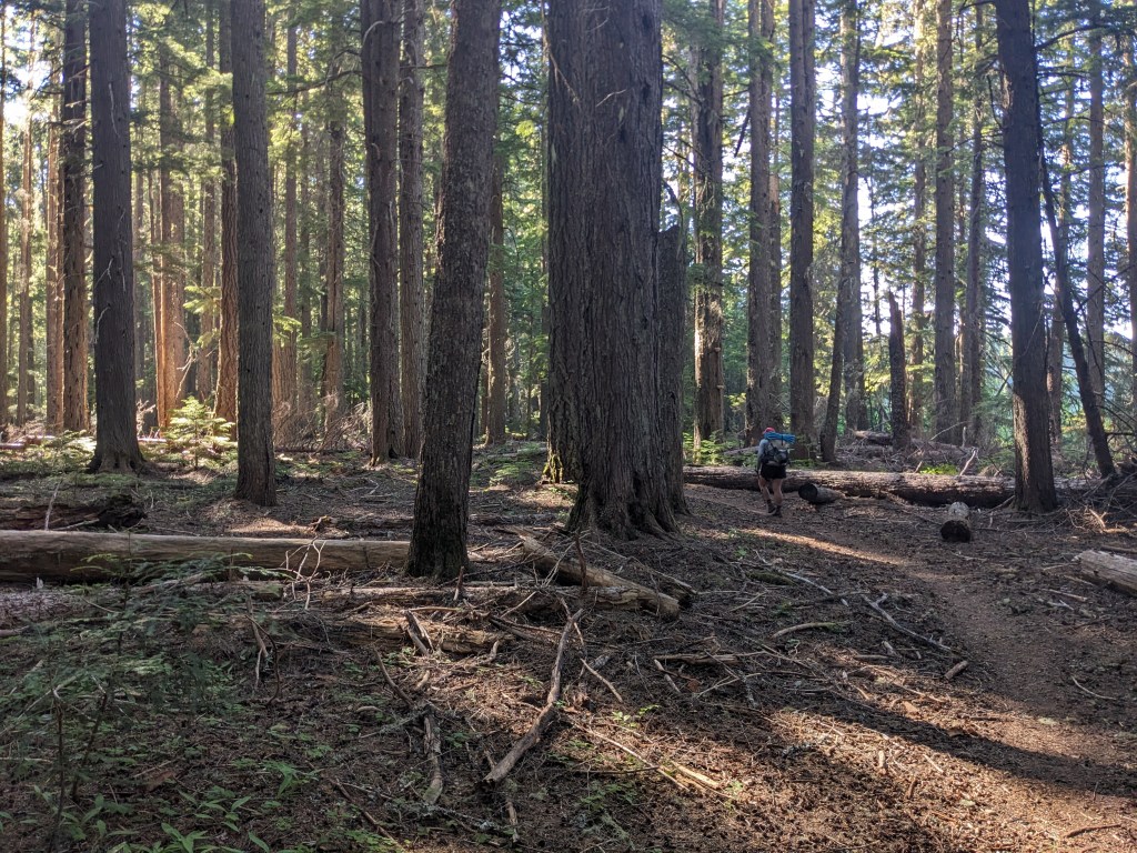 Group campsites can be fun, but the noise is an issue at times. One hiker packed up before the sun around 4:30, which was annoying, but I’m sure they were trying to go to sleep when we rolled in last night so I guess it’s all fair. Enjoying a slow morning, we got pop and candy from the resort store. We met Zap and Day Hiker, a couple from England, while hanging out outside the store. They were fun to chat with and hearing them say biscuit instead of cookie when referring to Oreos was funny. The hiking was cruisy in the morning and we covered the first 3.5 miles in an hour, which was a pretty good pace for us. Another few hours and we stopped for lunch at Lemiti Creek. Zap and Day Hiker had stopped there as well, but on the other side. We kept to ourselves though and ate and relaxed in the shade. The afternoon hiking was hot and slower than the morning, but we were super thankful to be passed the burn area and all of the blowdowns. Smooth trail is fast, and Oregon has very mellow elevation changes, so we can cruise when we’re feeling good. Our campsite tonight is next to Warm Springs River and we have a few neighbors on both sides. We got to camp early enough today to comfortably do camp chores (like wash our socks in the river). Hoping it doesn’t rain despite some clouds gathering low. The open mesh tent has been especially nice, I can see why people cowboy camp. Right before the stars come out you can sometimes see a bat swoop through the trees towering above.