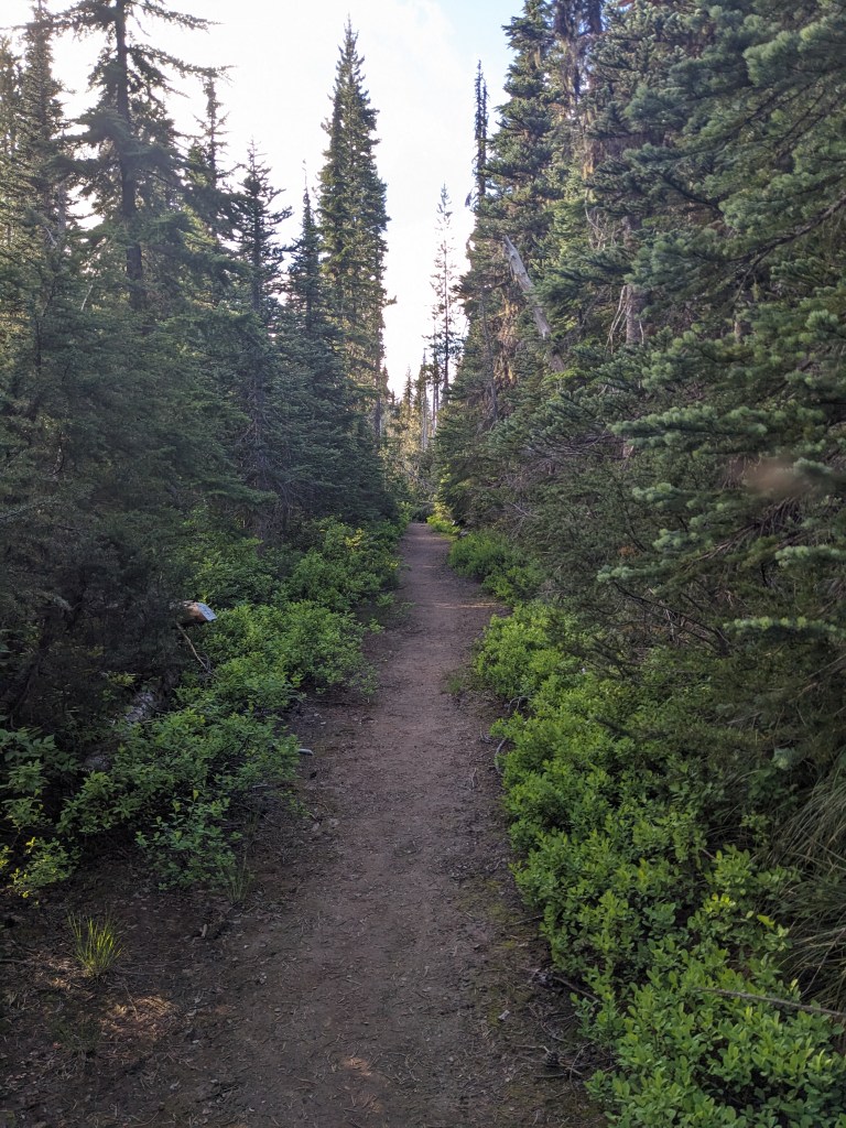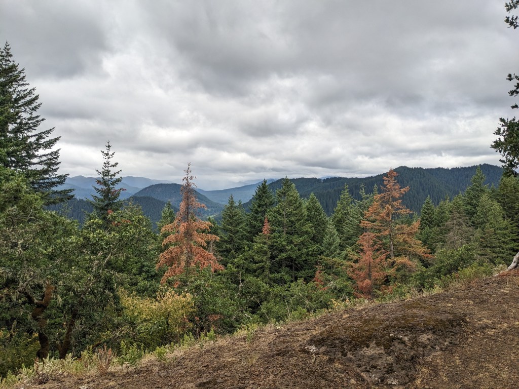 Turned out to be a beautiful night full stars and the sound of the river flowing by. We got moving and headed for the Panther Creek campground, which would allow us to use a toilet, empty our trash, and then get water from Panther Creek. We needed to carry for 9 miles and 3200ft, and it ended up being a relatively smooth hike up. I think a large part of that was the weather being cooler. It was rather cloudy and at times it sprinkled a bit, so we stopped at one point to put in our pack liners and bring all the rain gear up from the bottom of our packs. First time we’ve needed that stuff, which I’m glad. At the top we stopped for lunch with Yardsale and Chickadee. They’ve been going roughly our speed and taking many of the same breaks most of yesterday and today so we’ve chatted a bit. They even cleared a spot to camp since we were all headed to the same point. We met Marshmallow, who we also saw at lunch, who is trying to catch up to the other members of her group. She joined our group at the end of the day, which I’m glad, she seems like she wants company. One of the guys in her group was staying in the room next to ours in Cascade Locks, small world.