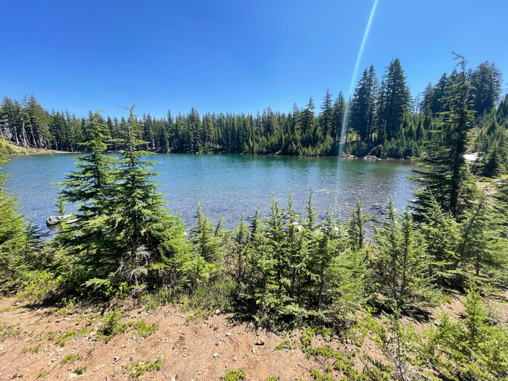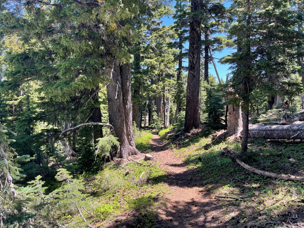 The sun woke me up again around 5:30 but I tried to fall back asleep for a while since the wind kept waking me most of the night. I’m tired and feeling discouraged about another hot day ahead of us. After doing our morning things we got to hiking through more burn over blowdowns.