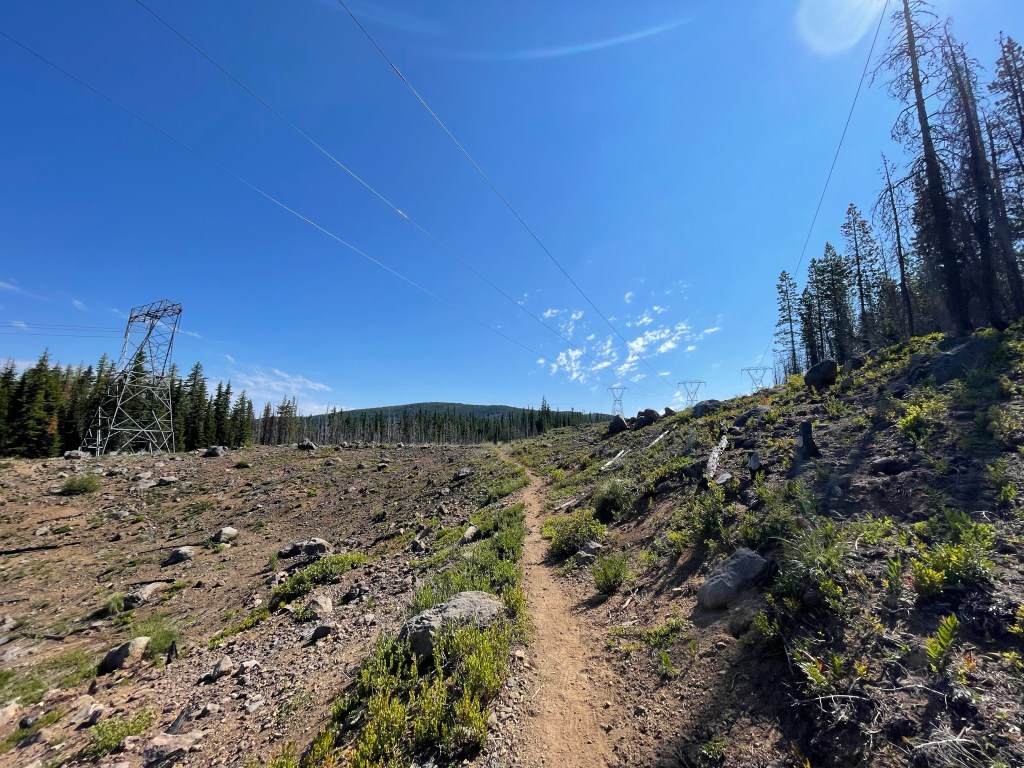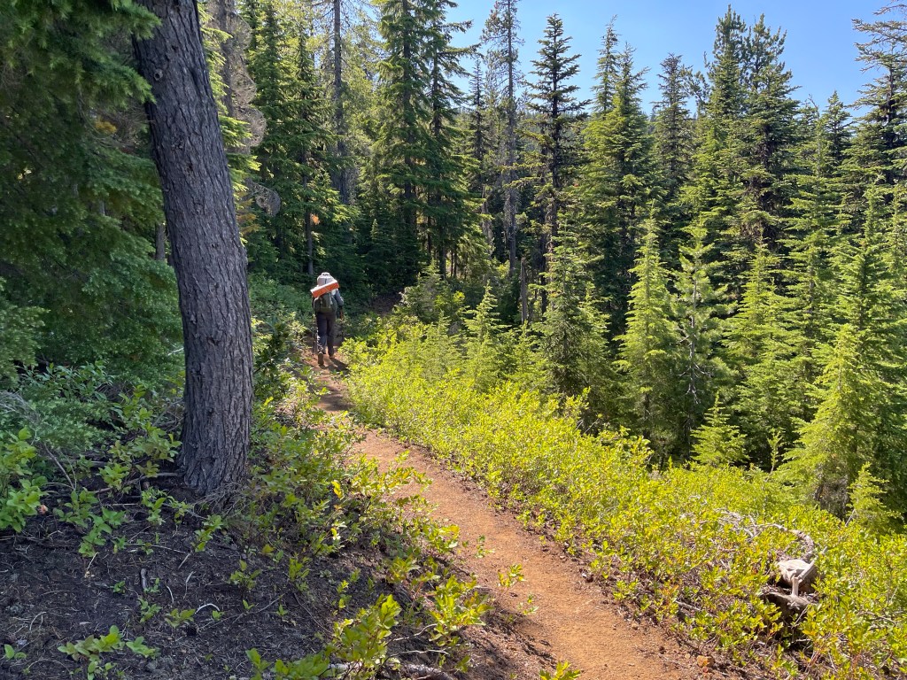 Neighbors were nice enough to try to be as quiet for us as we were tried to be the night before. Another not very restful night, one of the thru hikers apparently left at 4am, I heard him but had no idea what time it was. Access to a pit toilet was a perk of the morning along with pop and snacks from the store. Left camp around 9:30 after chatting with Dayhiker & Zap. A morning Dr. Pepper fueled our fast morning out of Olallie , got to lunch around 1 & took a nap. Very forested, easy grades hiking. Tried to keep up the pace to get to camp early to do some chores. Rolled in around 6:30, set up the tent, washed up, had a fancy dinner of bagel, string cheese and olives…desert was some Oreos. I’m still not drinking enough, it’s so hard with the heat. My feet, legs & lower back are sore, lots of cuts and bruises on my legs. Some sunburn on the backs of my knees.