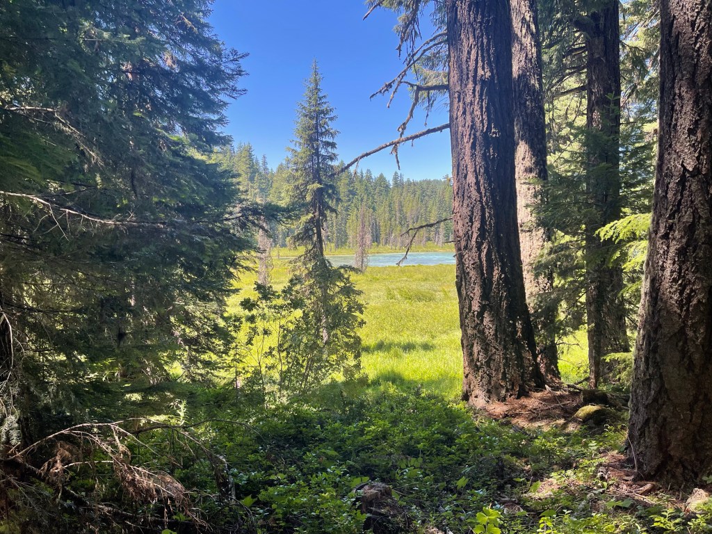 We get some cruisey miles to our next water source where we plan to stop for lunch. As I was grabbing water to filter later I lost my balance on the rocks, slammed my arm into a tree and completely submerged my left foot. The lunch stop could not come soon enough. We did hike on for another mile or so before we found a good shady spot overlooking Timothy lake. I ate my last bagel with string cheese and olives then took a nap.