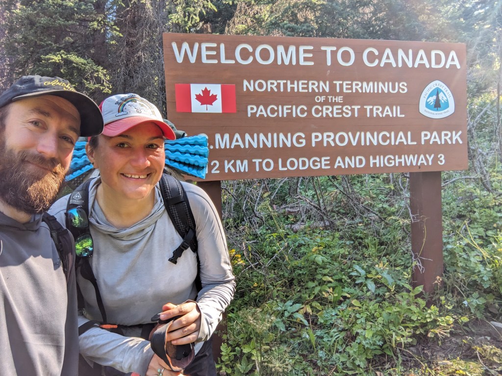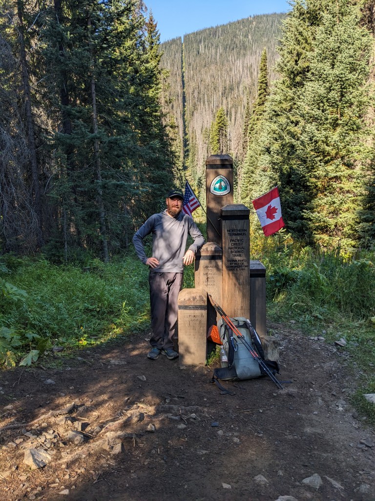This is it! Last 3 miles to the border and then 8 more to the highway. This makes it 670 miles from Sisters to Canada in 42 days. About 90,000ft of elevation gain. One zero in Leavenworth, 5 nearos (Timberline Lodge/Govy, Cascade Locks, Trout Lake, Snoqualmie/Seattle, and Stehekin), 1 hero (White Pass). Sent the bear can, puffy, and microspikes home in Trout Lake (250 miles in). Got new shoes after 400 miles. Also got a belt, since the cinch on my pants wasn’t cutting it anymore. The belt didn’t really do the job much better, but at least my pants weren’t falling off. I had gained weight before the trip in anticipation of the calorie deficit, but I struggled to eat enough each day. Not for a lack of trying. I lost a fair bit of weight in a short time, but I still feel healthy. I feel strong, like my legs could go far longer each day. My feet are battered, but tough, and I only got one blister early on. I haven’t used leukotape in weeks, my feet do just fine in my Darn Toughs. I’m sick of Injinjis, but they were nice at the start to prevent between-the-toes blisters. I eventually switched solely to Darn Toughs and have been happy with them. My sun shirt smells so bad, and I think it has stopped being effective at blocking the sun because the back of my neck has felt burned the past few days. Switched to an Ursack back in Leavenworth (8oz instead of 40oz for the bear can), worth it. The 3 miles before the border were effortless and full of anticipation. The monument was great to see and we shared the experience with some hikers from the class of 2022 who had similar stories about finishing their hikes. It was fun to keep the mood light, especially after such long distances. Lots of photos and laughs. Once we got moving again we first encountered a bridge that was quite rickety and made me nervous while walking across, but it held out. Mostly downhill with a few inclined sections, the miles went quick enough. Although I sent some confusing text messages to my waiting parents, they figured out what I meant and met us along the trail about 1.5 miles in from the trailhead and finished it out with us. It was great to give them a hug and walk out of the woods together. We learned that they had met Strider and her tramily at the Manning Park restaurant earlier in the day. We got food and went back to the AirBnb to shower. It felt so nice to take a shower and not have to rush through it. And to sleep in a bed! The next day we learned of new fires near the trail that closed the section we just hiked through. We got out in the nick of time! What an end to our PCT hike.