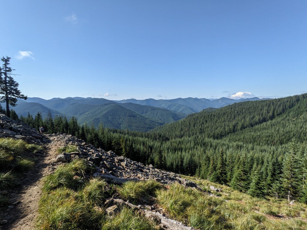 This is it! Last 3 miles to the border and then 8 more to the highway. This makes it 670 miles from Sisters to Canada in 42 days. About 90,000ft of elevation gain. One zero in Leavenworth, 5 nearos (Timberline Lodge/Govy, Cascade Locks, Trout Lake, Snoqualmie/Seattle, and Stehekin), 1 hero (White Pass). Sent the bear can, puffy, and microspikes home in Trout Lake (250 miles in). Got new shoes after 400 miles. Also got a belt, since the cinch on my pants wasn’t cutting it anymore. The belt didn’t really do the job much better, but at least my pants weren’t falling off. I had gained weight before the trip in anticipation of the calorie deficit, but I struggled to eat enough each day. Not for a lack of trying. I lost a fair bit of weight in a short time, but I still feel healthy. I feel strong, like my legs could go far longer each day. My feet are battered, but tough, and I only got one blister early on. I haven’t used leukotape in weeks, my feet do just fine in my Darn Toughs. I’m sick of Injinjis, but they were nice at the start to prevent between-the-toes blisters. I eventually switched solely to Darn Toughs and have been happy with them. My sun shirt smells so bad, and I think it has stopped being effective at blocking the sun because the back of my neck has felt burned the past few days. Switched to an Ursack back in Leavenworth (8oz instead of 40oz for the bear can), worth it. The 3 miles before the border were effortless and full of anticipation. The monument was great to see and we shared the experience with some hikers from the class of 2022 who had similar stories about finishing their hikes. It was fun to keep the mood light, especially after such long distances. Lots of photos and laughs. Once we got moving again we first encountered a bridge that was quite rickety and made me nervous while walking across, but it held out. Mostly downhill with a few inclined sections, the miles went quick enough. Although I sent some confusing text messages to my waiting parents, they figured out what I meant and met us along the trail about 1.5 miles in from the trailhead and finished it out with us. It was great to give them a hug and walk out of the woods together. We learned that they had met Strider and her tramily at the Manning Park restaurant earlier in the day. We got food and went back to the AirBnb to shower. It felt so nice to take a shower and not have to rush through it. And to sleep in a bed! The next day we learned of new fires near the trail that closed the section we just hiked through. We got out in the nick of time! What an end to our PCT hike.