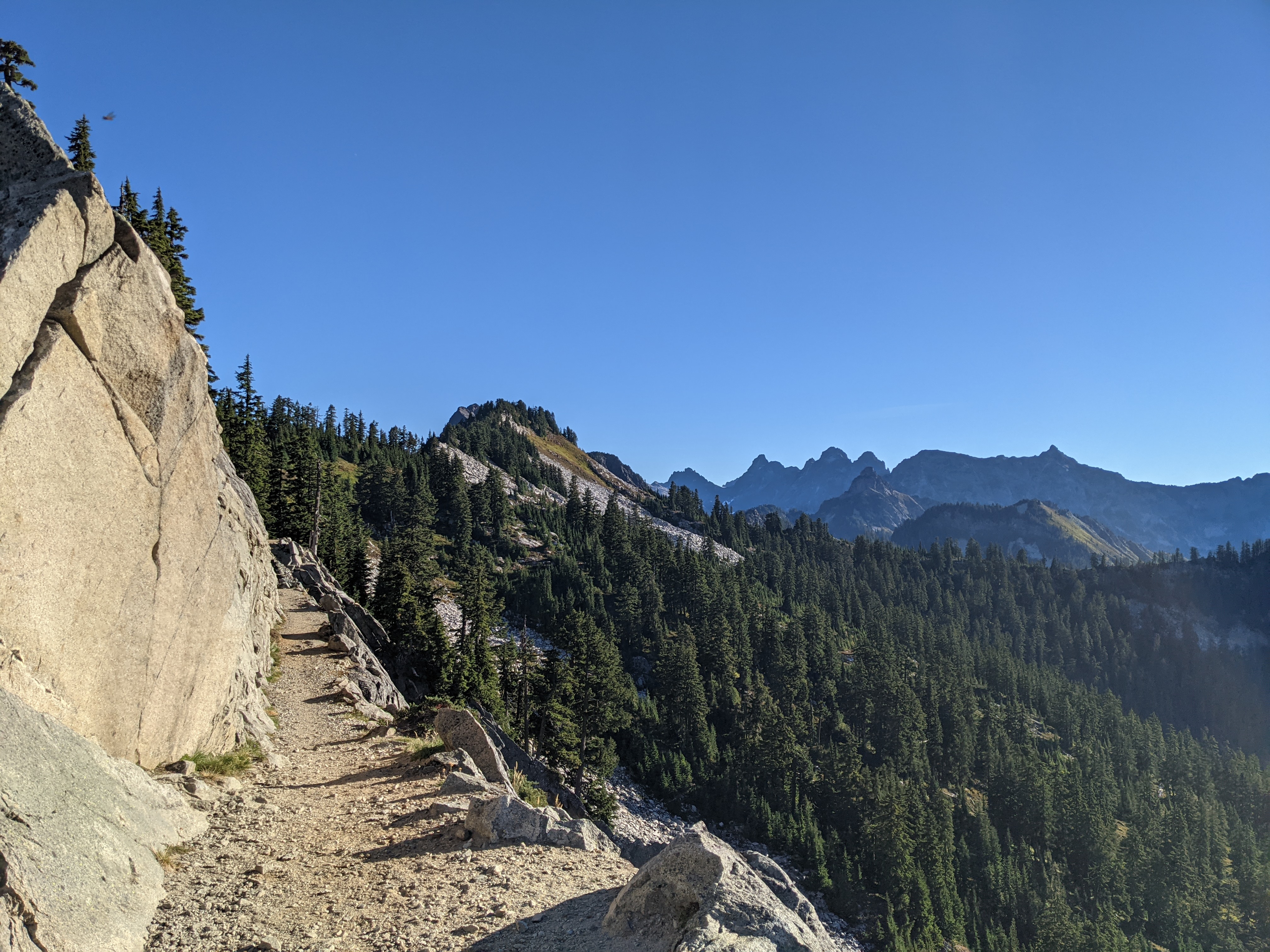 Rough day! Last night we rediscovered that one of the zippers in the tent needs replaced (rookie mistake #1, should have addressed that after our ’21 hike), and Marie’s pillow won’t hold air (rookie mistake #2, should have put a permanent fix instead of the tenacious tape that’s been on it since our ’21 hike). We also had to be strict with water since we hadn’t brought enough with us (rookie mistake #3, should have brought more water from the start based on our target miles and high temps). We made it work though. The zipper can work if you guide it juuuust right, a combo of the deflating pillow and some extra clothes will be fine for a night or two, and we had a questionable water source in 4 miles. Had that small pool been dry, we would have been alright stretching our water the last couple miles downhill to Big Lake Youth Camp, no big deal. The tiny pool still had water though, so we lucked out. The youth camp is extremely generous to PCT hikers! We filled our bottles and I grabbed an extra couple liters for the day. We only hung out for a bit in their PCT Hiker building, but they have 3 meals a day, laundry, showers, water, a kitchen, resupply storage, and other hiker amenities. Super cool. We met a guy named Paul, a guy named Carrot, and a lady named Whimsy. Wanting to keep lightening our packs, we opted to head back out and eat the food we were carrying instead of eating their lunch. We hiked out, found the pond at which we were hoping to eat lunch, found the mosquitos, and then found out that Marie’s water filter has threads that don’t match the threads on the pouch that she brought (rookie mistake #4, should have tested the new filter on that pouch, not just the one in the box). My filter works fine, so I collected water for both of us. The mosquitos were hungry, so we hiked a little further until we found a flat spot in the shade that we could setup the tent and eat lunch in peace. Continuing on, while hopping over blowdowns in this dry, burn area, I developed a nosebleed. I stuffed some toilet paper in my nostril and we started walking again. Shortly after, Marie was dealing with skin chafe as we approached the highway leading into Sisters. The same one we came in on riding the bus from Portland. Rather than going 6 more miles, most of which were uphill through more dry, dusty, burned trees, we decided to go back to Sisters, reset, and start again tomorrow. Our hitch into Sisters came from a man named Matt who was driving a rental truck because his own truck had burnt to the ground over the weekend. He was a nice guy, used to take troubled kids on backpacking trips until funding dried up. I hope he eventually gets to the hike the trail, if his wife will let him.