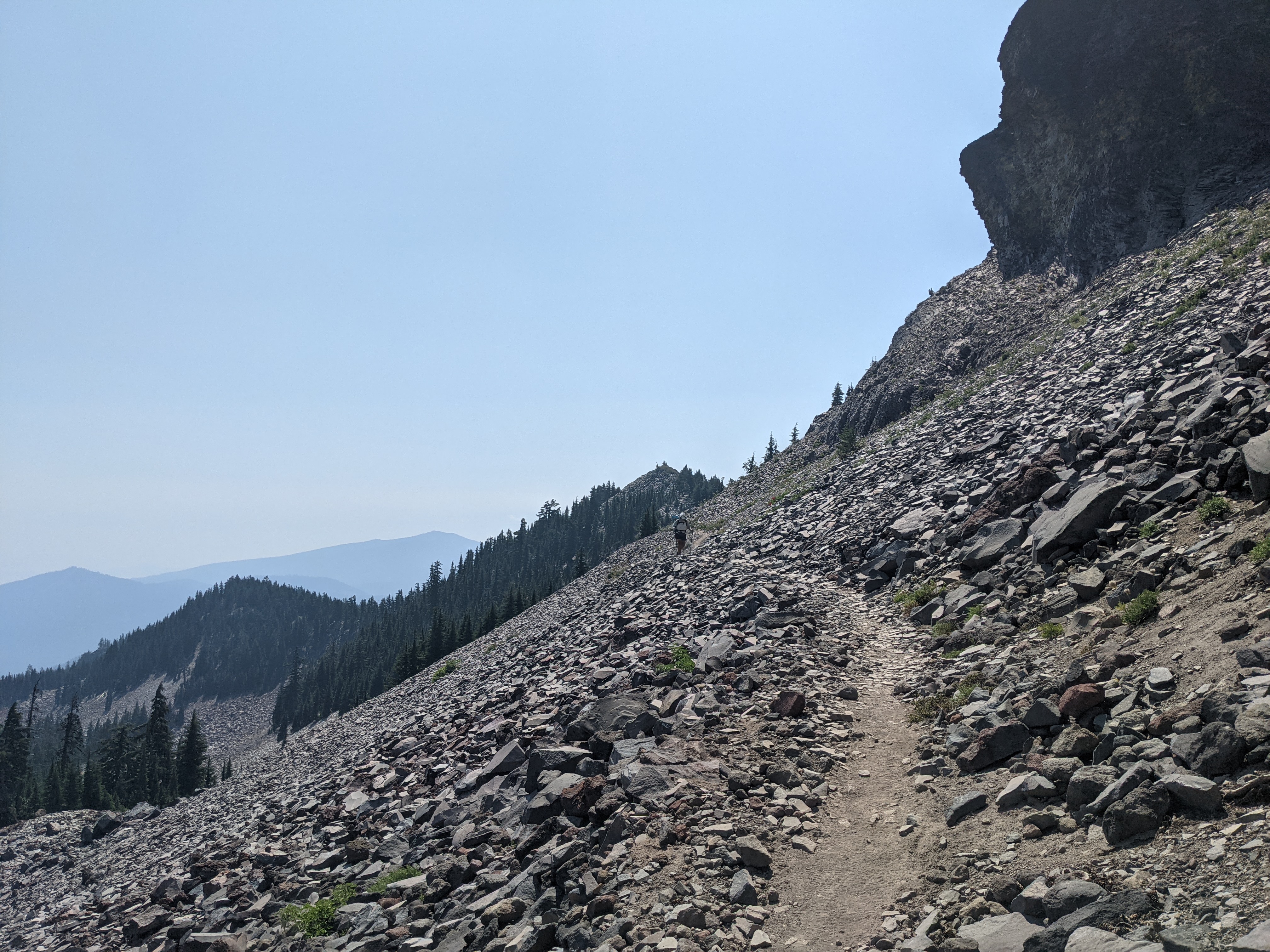 Breakfast from the Bridgeside Restaurant was okay food, but the best part was sitting with Studio 54, Bearslayer, and Captain Fantastic. Sharing stories, talking about trail life, and general plans for the next few weeks. It’s fun to commiserate with fellow hikers who have also had the “do I want to keep going?” internal struggle. Some decide to tough it out, others bail and go home. Everyone is on their own journey and needs to make the decision for themselves. We will keep moving north, but the closer we get to Canada the more we want to be done. Town luxuries are appealing and the pain from hiking everyday takes its toll, but to quit now would be disappointing. So, onward and upward; plenty more to see and experience yet. We indulged in some ice cream at the Eastwind Drive-In before heading down to the main Trail Days area. The vendors had already setup, but they hadn’t opened it to hikers yet, so we waited outside the fence for a bit. Once they did open it up, we walked around the booths checking out the various new tents and food items being marketed. One booth selling food had a pull-up bar setup to challenge hikers to hang on it for 90 seconds to win one of their meals. I could only hold on for 62. All of my upper body strength is gone. At another booth they were selling slanted blocks that were supposed to help correct your foot position while walking. They also had a 50-calf-raise challenge that Marie completed without issue, which earned her a free bandana. Ultimately we left without buying anything or taking much swag. The post office was going to close and we needed to get our bounce box mailed out before it did so we went back to the room to pack that up. The post office was busy with a line out the door, but we were able to get our boxes handed over before they closed. We heard that the fish and chips place nearby was good so we got some for a late lunch. We didn’t really have any other town chores to do so we went back to the Gorges brewery to have a couple beers and hang out. We saw Studio 54 walking by and invited him to join us. We all had a great time hanging out the rest of the evening, except for a brief time that a red-headed hiker joined us only to complain to the waitstaff that their QR menu system was insulting. He left shortly after, thankfully. The rest of the night was a lot of fun chatting with Studio before we went back to the room.