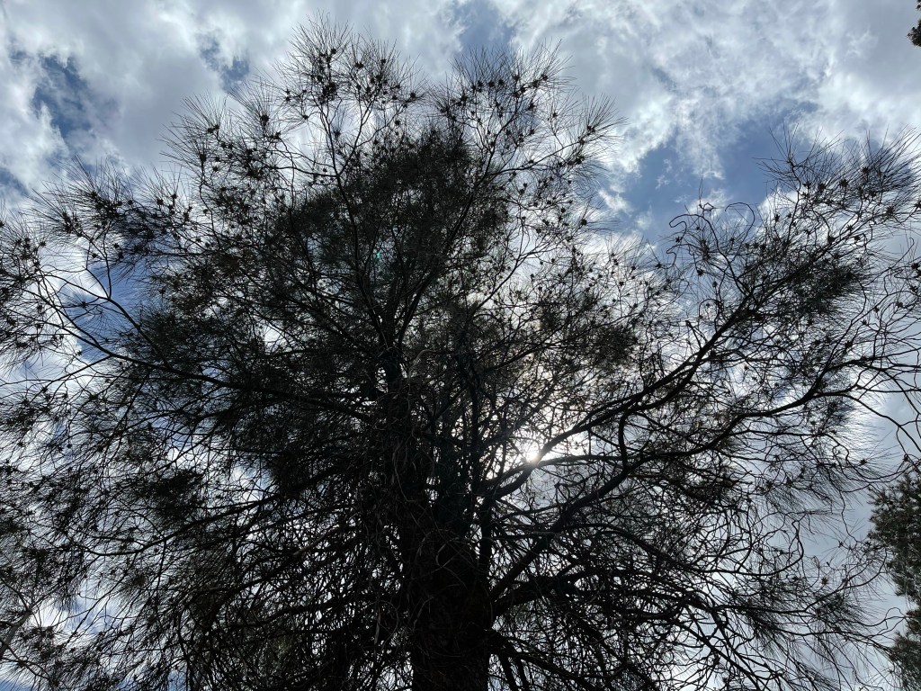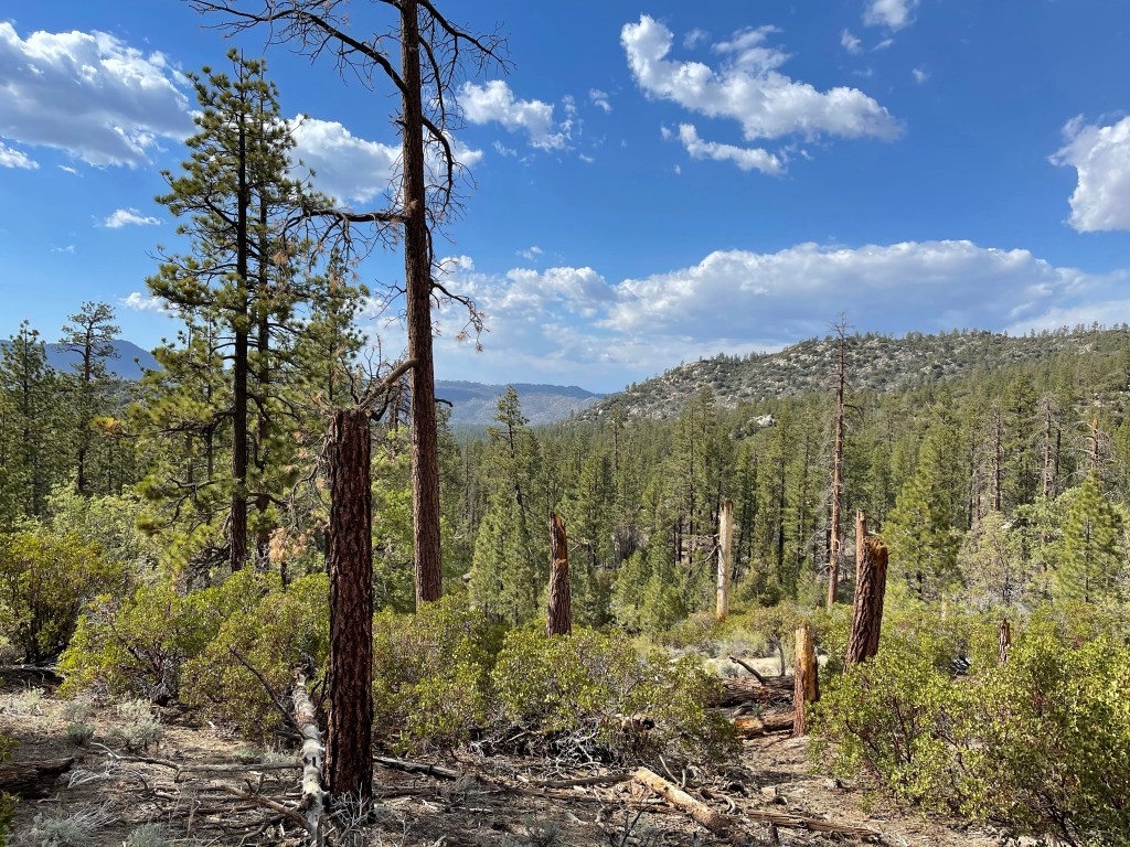 Onwards to lunch through a burn and next to a construction site where they are rebuilding some power lines. We could see a stand of trees down the way and made a beeline down the trail to it. Lunch was a three hour affair just trying to wait out the heat a little. I took a nap and listened to some podcasts while we hung out there. Soon some clouds started rolling in and we decided to get moving. Hiking in the afternoon with shade provided by clouds was way better!
