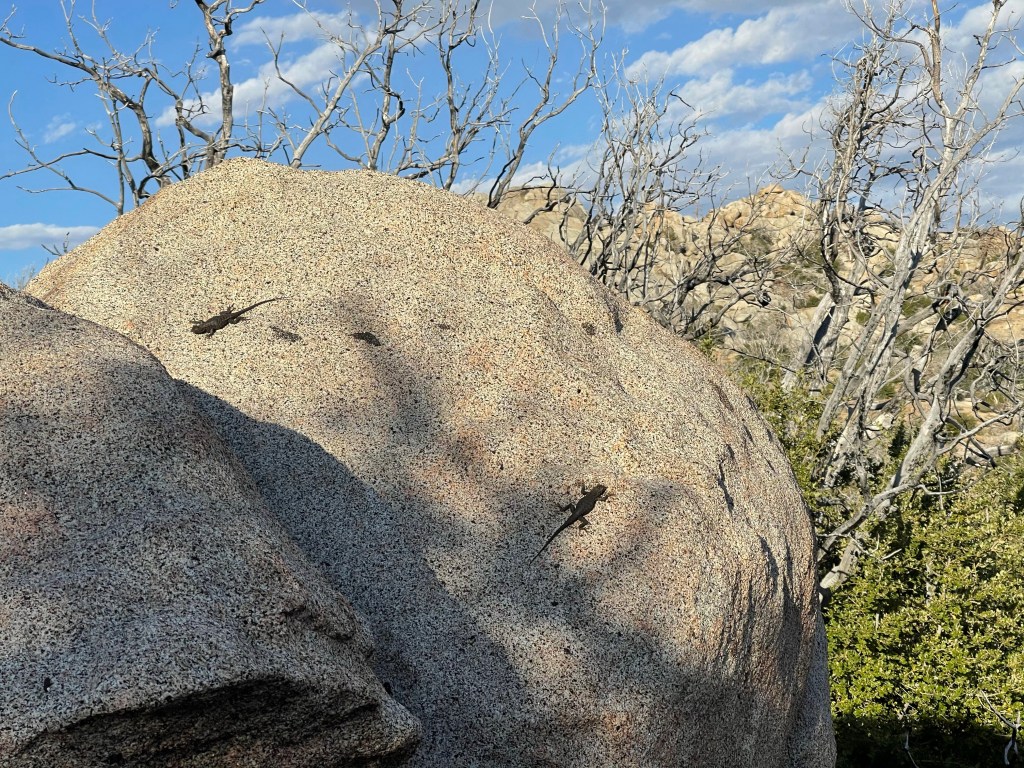The water cache was fully stocked and we loaded up with what we thought was enough water to get us to the next cache. Turns out the high for the day was going to be 103 and I didn’t have enough water to not have to ration. We made it to our lunch spot as the heat was the worst and tried to find some shade. We first tried the old mining equipment but soon were over run by ants so we moved over to the shade of some Joshua trees. Jake got restless and said he was ready to go to our camping destination around 3. I wasn’t ready yet so I told him to go ahead and I would see him later. When he left I took a nap and tried to pump myself up to get back into the heat.