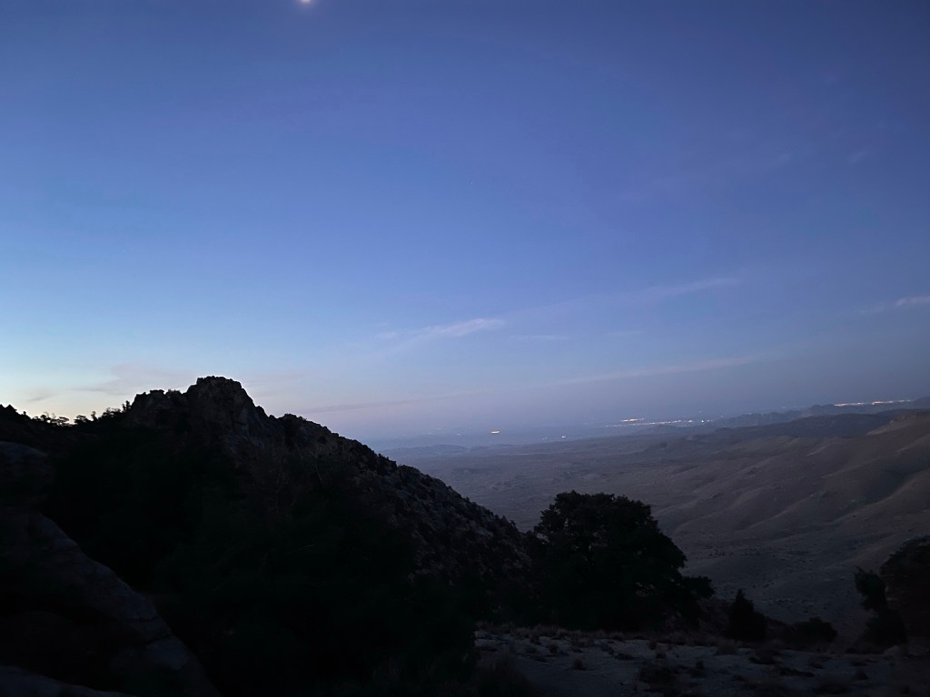 We started hiking around 4 and of course we were climbing right away. I saw my first scorpion just hanging out on the trail! It was a big one and creeped me out so I ran away before I could get a picture. It was still a little windy so there were points where most of what I could see in my headlamp light was just dust. Soon we got near the top of the climb and could catch the sunrise so we stopped for a snack and watched it for a bit.