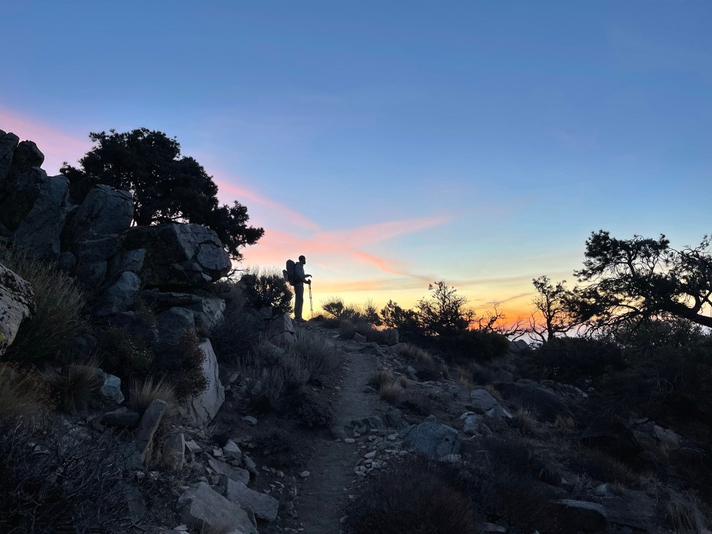 Finally we were at the pass and could start hiking. The temperature wasn’t cool but it at least wasn’t 104 like earlier in the day. We hiked for a bit and decided to stop for dinner at a spot where some other hikers had set up for the night. We chatted for a bit and decided to keep going. Hiking until midnight past a lot of other sleeping hikers we made it to our spot. There was a curious mouse when we were setting up and we both hoped it wouldn’t be a problem overnight.